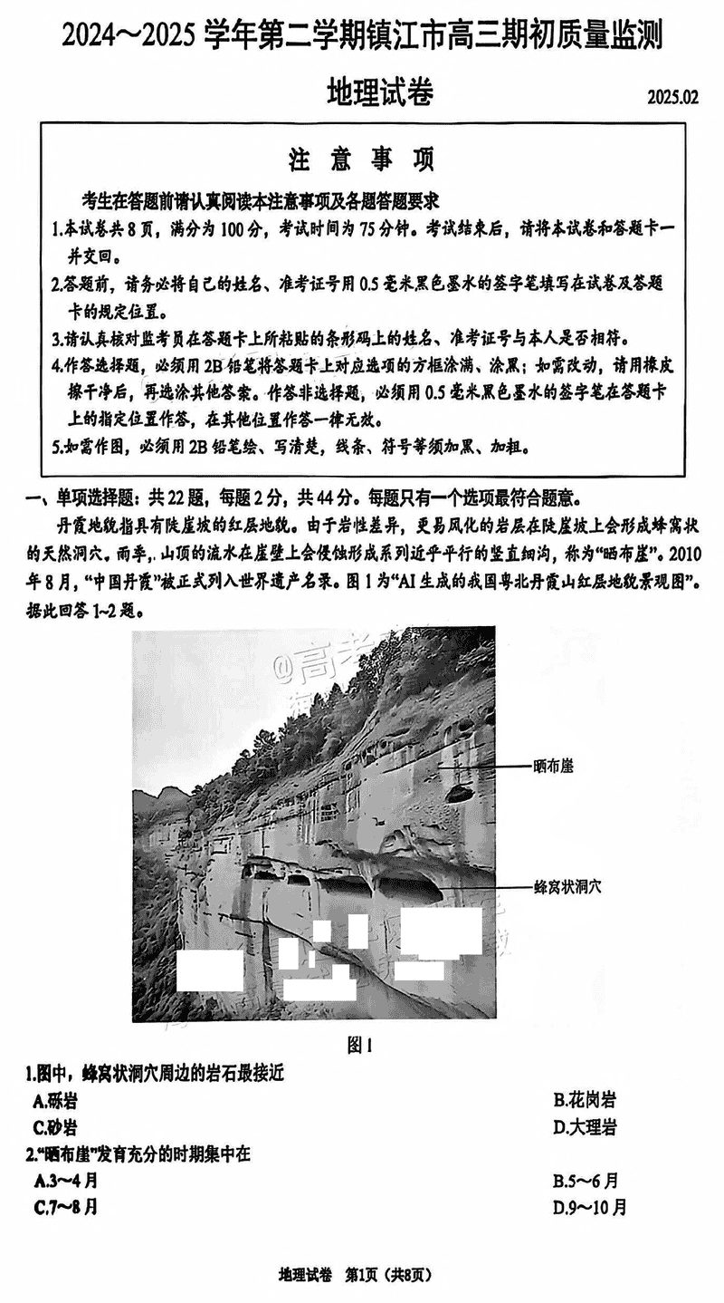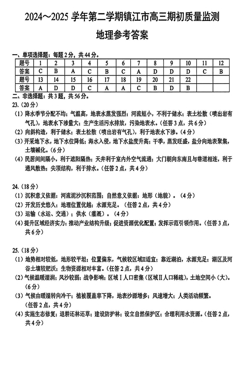 江苏镇江2024-2025学年高三下学期期初质量监测地理考试已于近日开考,为方便考生考后及时查看考试情况,查漏补缺、弥补不足,本文整理了试题答案解析相关信息!