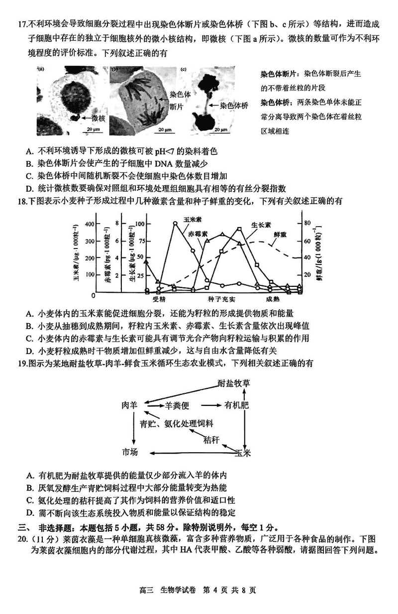 江苏镇江2024-2025学年高三下学期期初质量监测生物考试已于近日开考,为方便考生考后及时查看考试情况,查漏补缺、弥补不足,本文整理了试题答案解析相关信息!