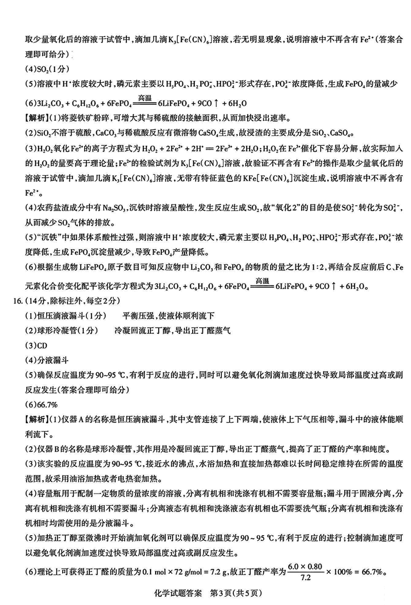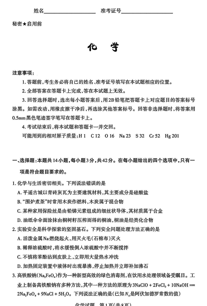 山西一模2025届高三下考前适应性测试启航卷化学考试已于近日开考,为方便考生考后及时查看考试情况,查漏补缺、弥补不足,本文整理了试题答案解析相关信息!
