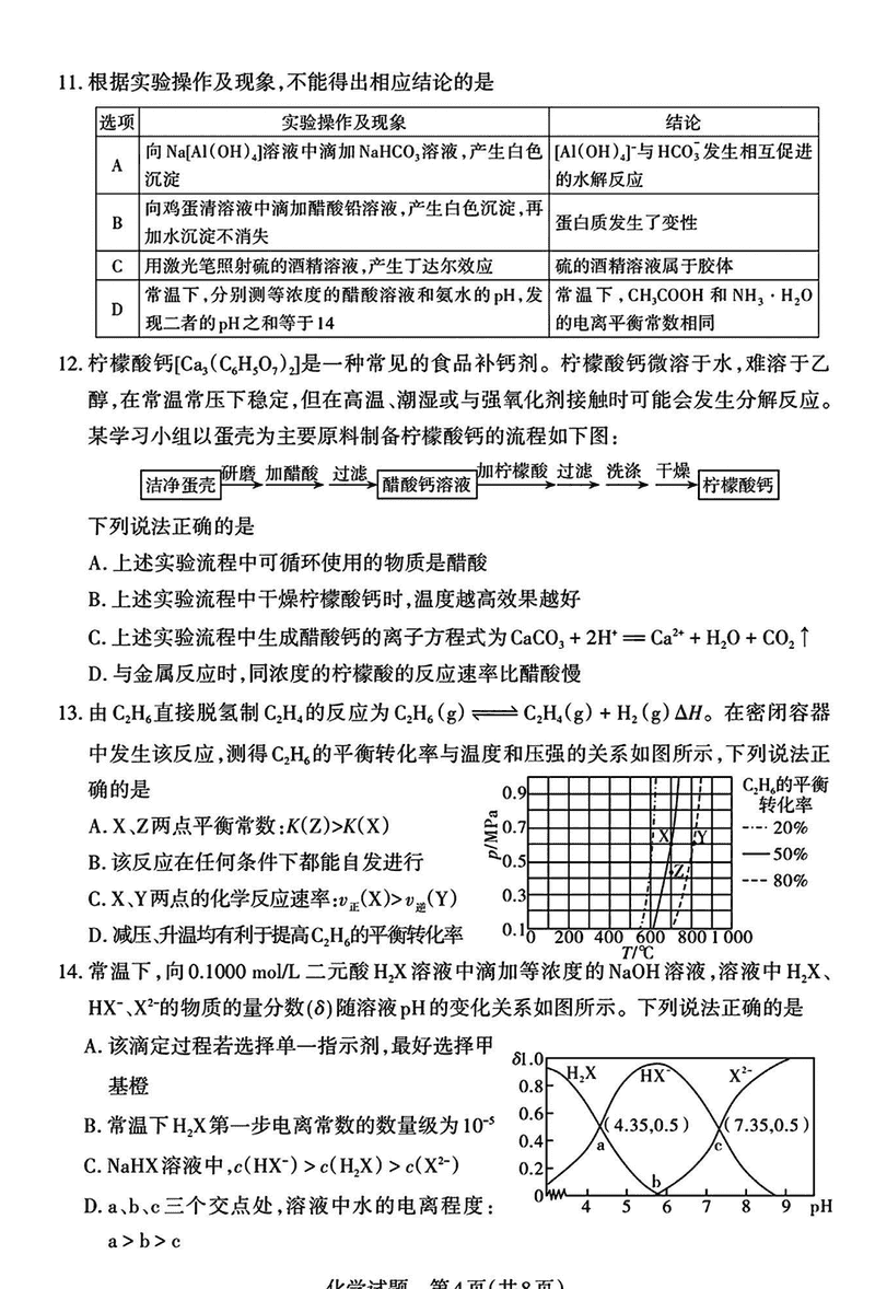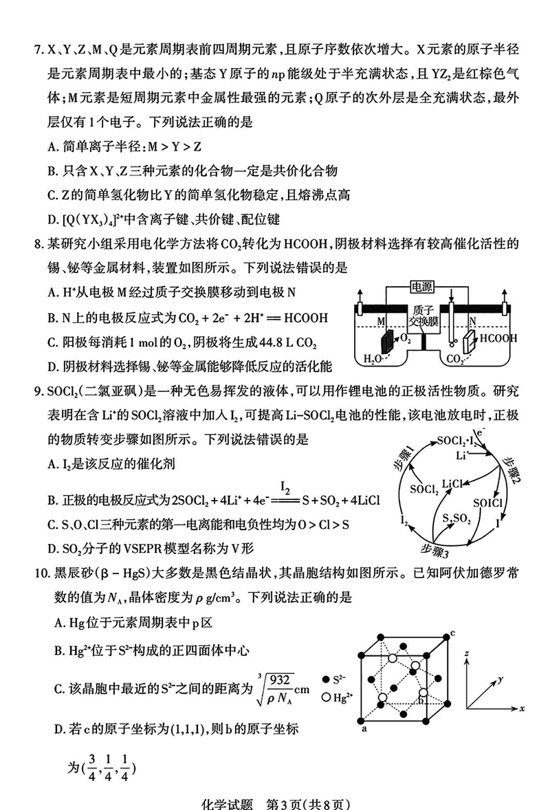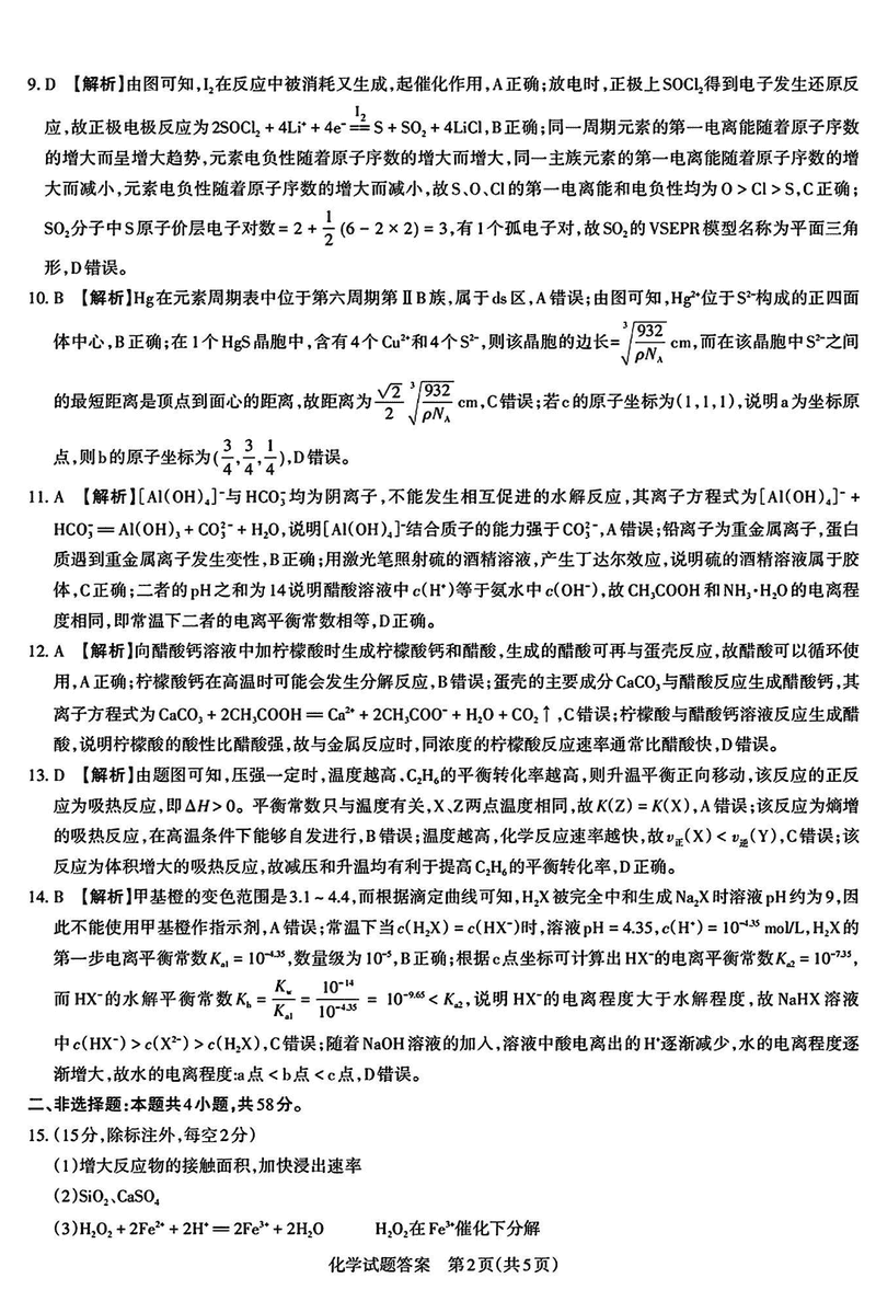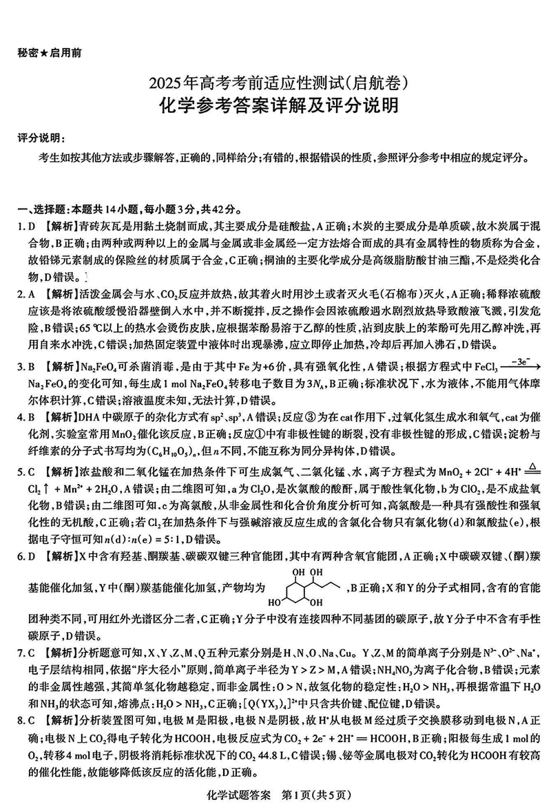 山西一模2025届高三下考前适应性测试启航卷化学试题及答案