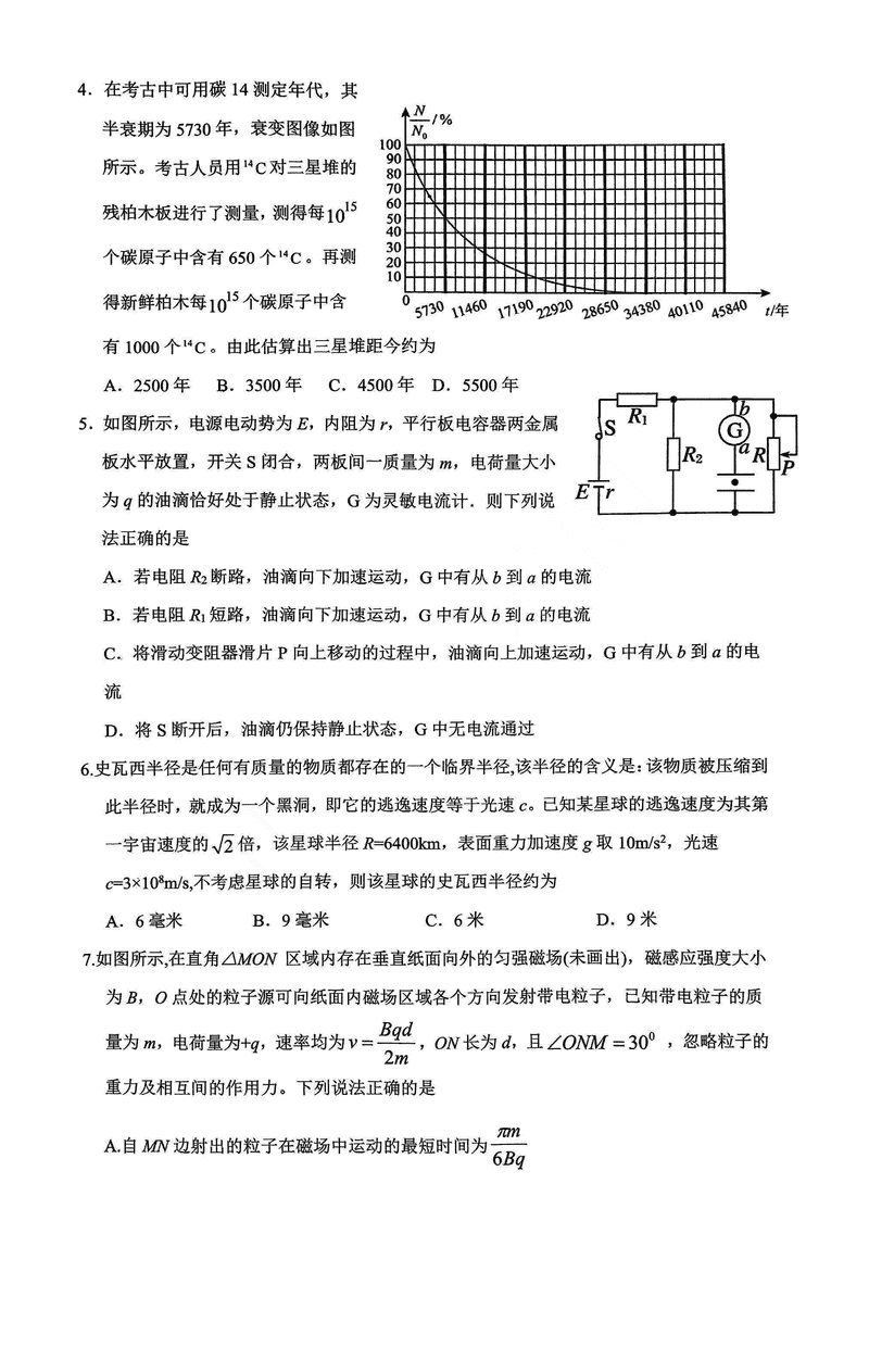 重庆一中2025届高三下学期2月开学考物理试题及答案