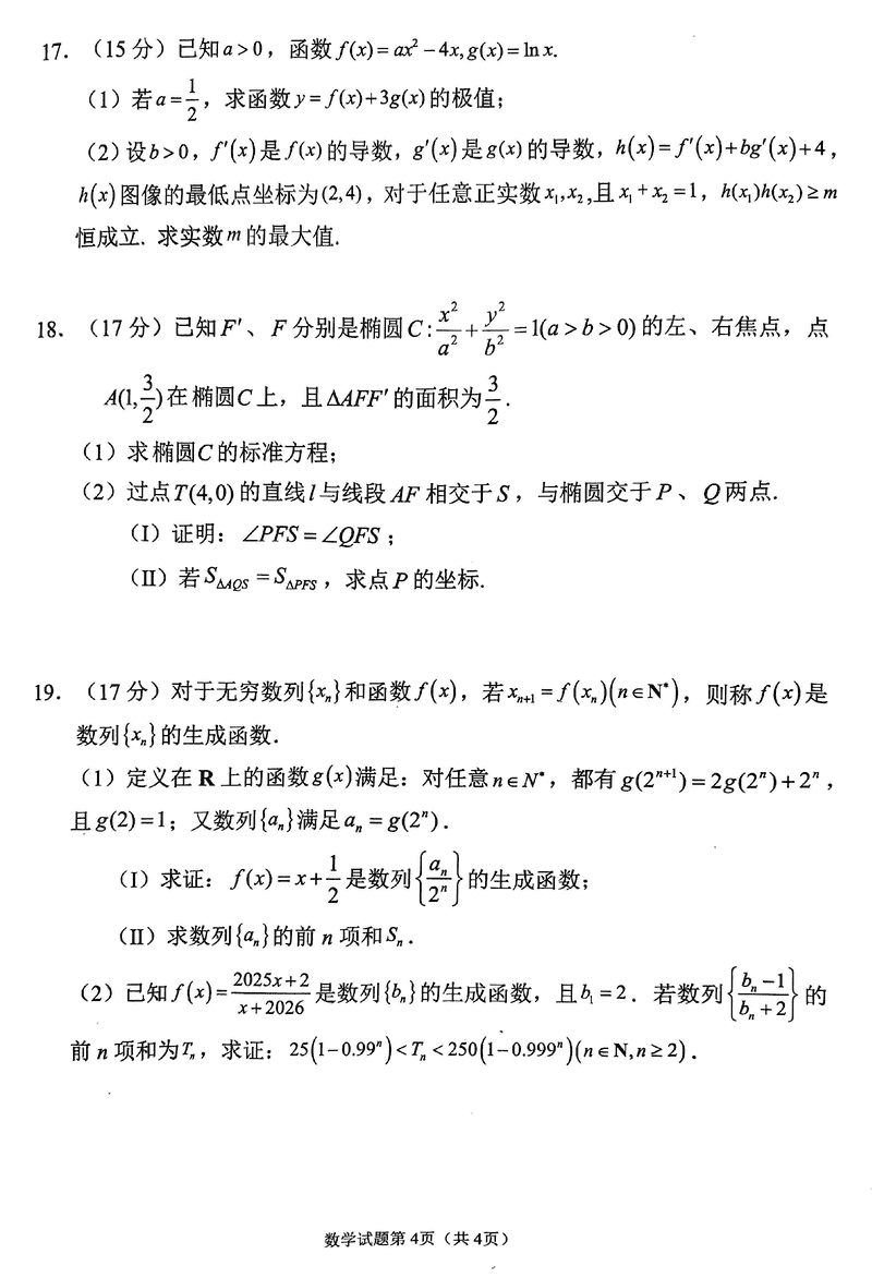 南充市高2025届高考适应性考试(二诊)数学试题及答案
