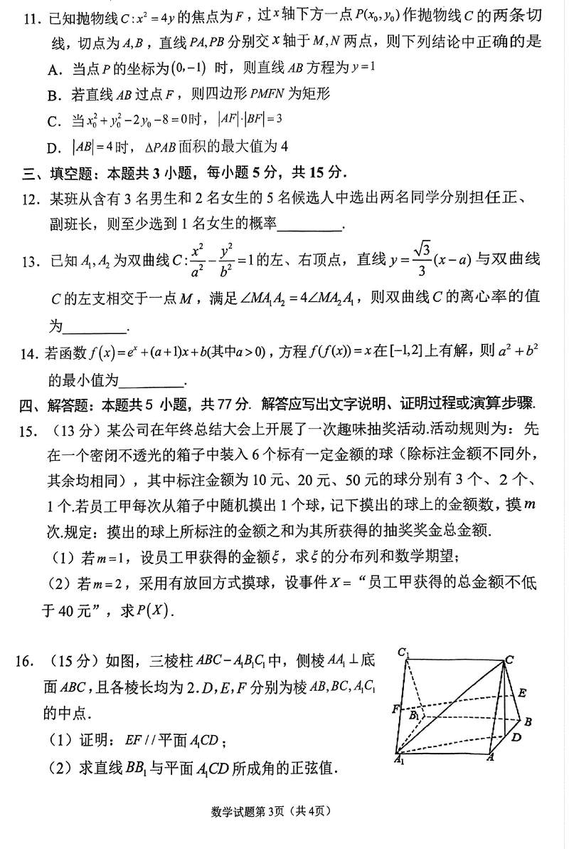 南充市高2025届高考适应性考试(二诊)数学考试已于近日开考,为方便考生考后及时查看考试情况,查漏补缺、弥补不足,本文整理了试题答案解析相关信息!