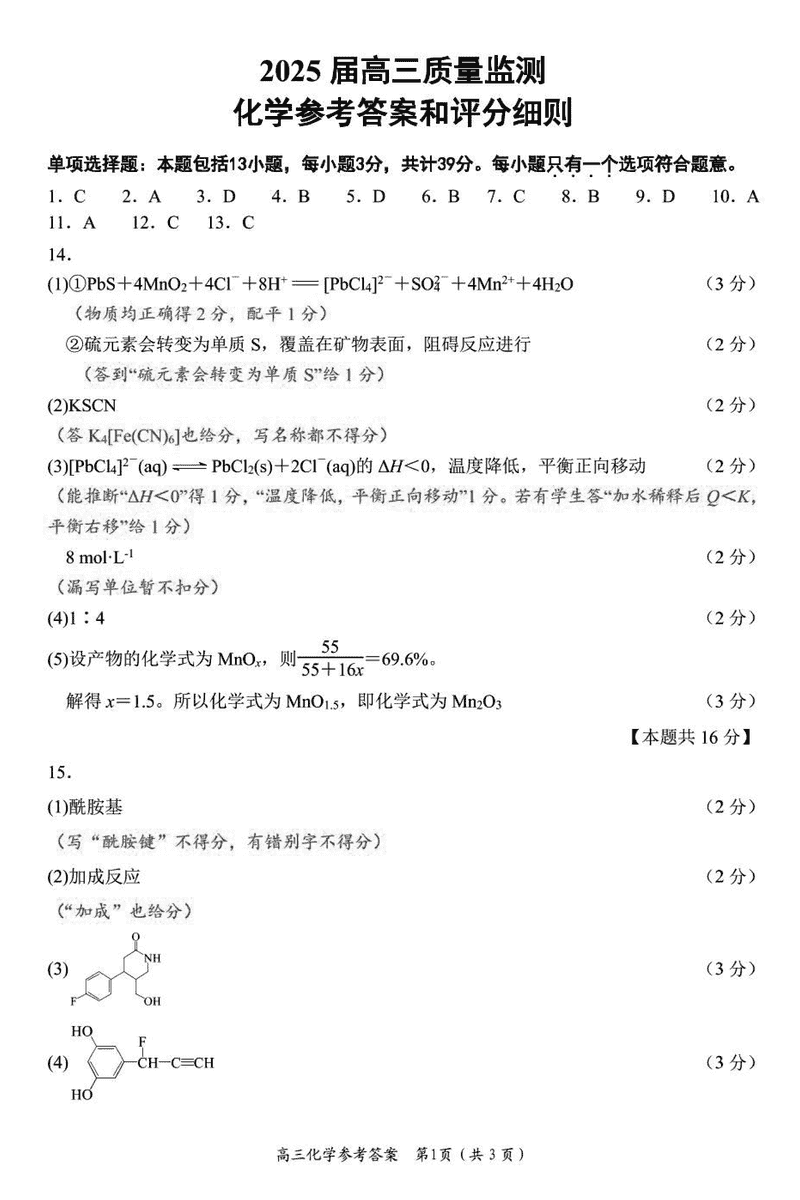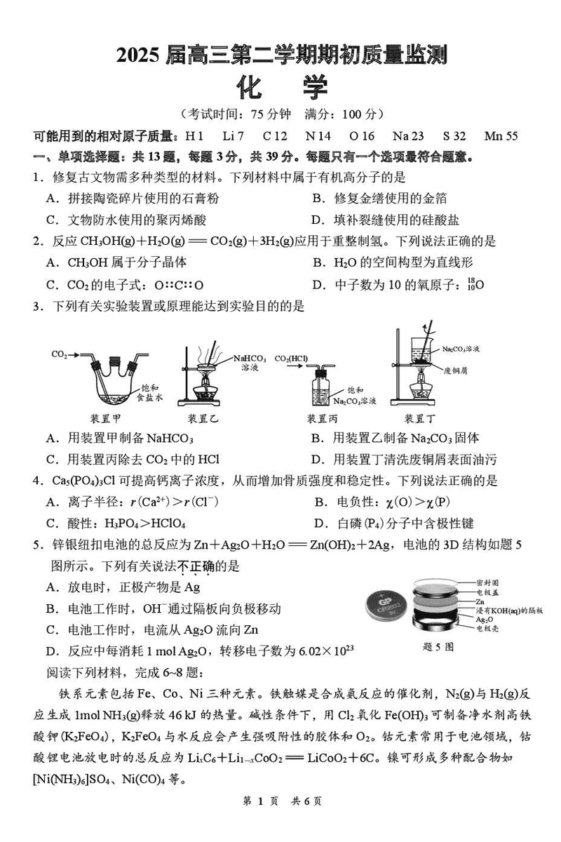 江苏省新高考基地学校2025届高三下学期期初质量监测化学考试已于近日开考,为方便考生考后及时查看考试情况,查漏补缺、弥补不足,本文整理了试题答案解析相关信息!