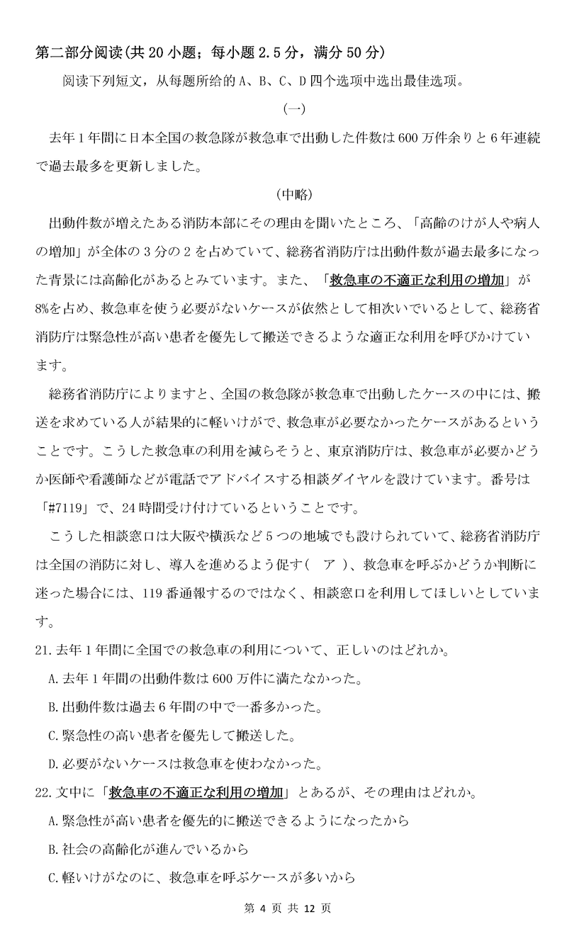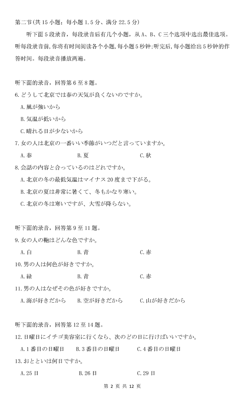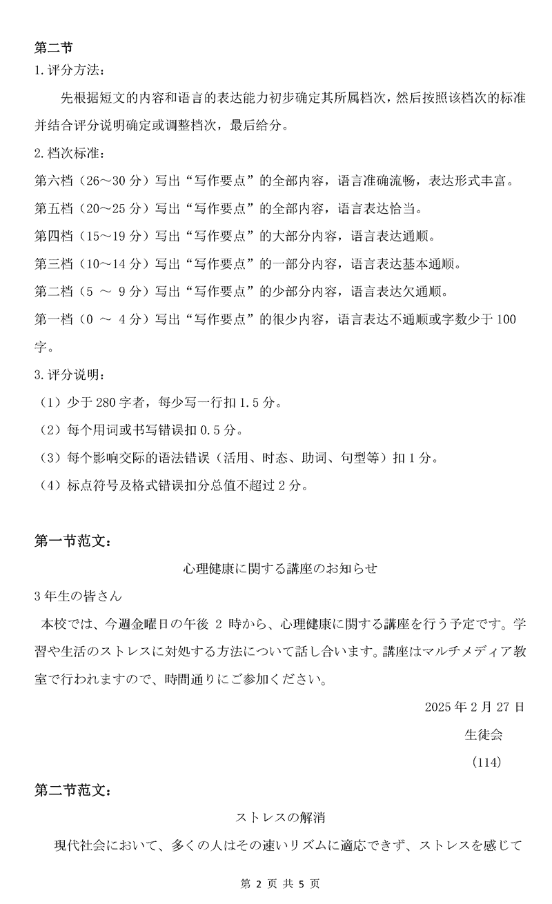 武汉市2025届高中毕业生二月调研日语试题及答案 时间:2025-03-01 湖北 英语试题 武汉市2025届高中毕业生二月调研日语考试已于近日开考,为方便考生考后及时查看考试情况,查漏补缺、弥补不足,本文整理了试题答案解析相关信息! 汇总:武汉市2025届高中毕业生二月调研考试试题及答案汇总 日语试题及答案解析