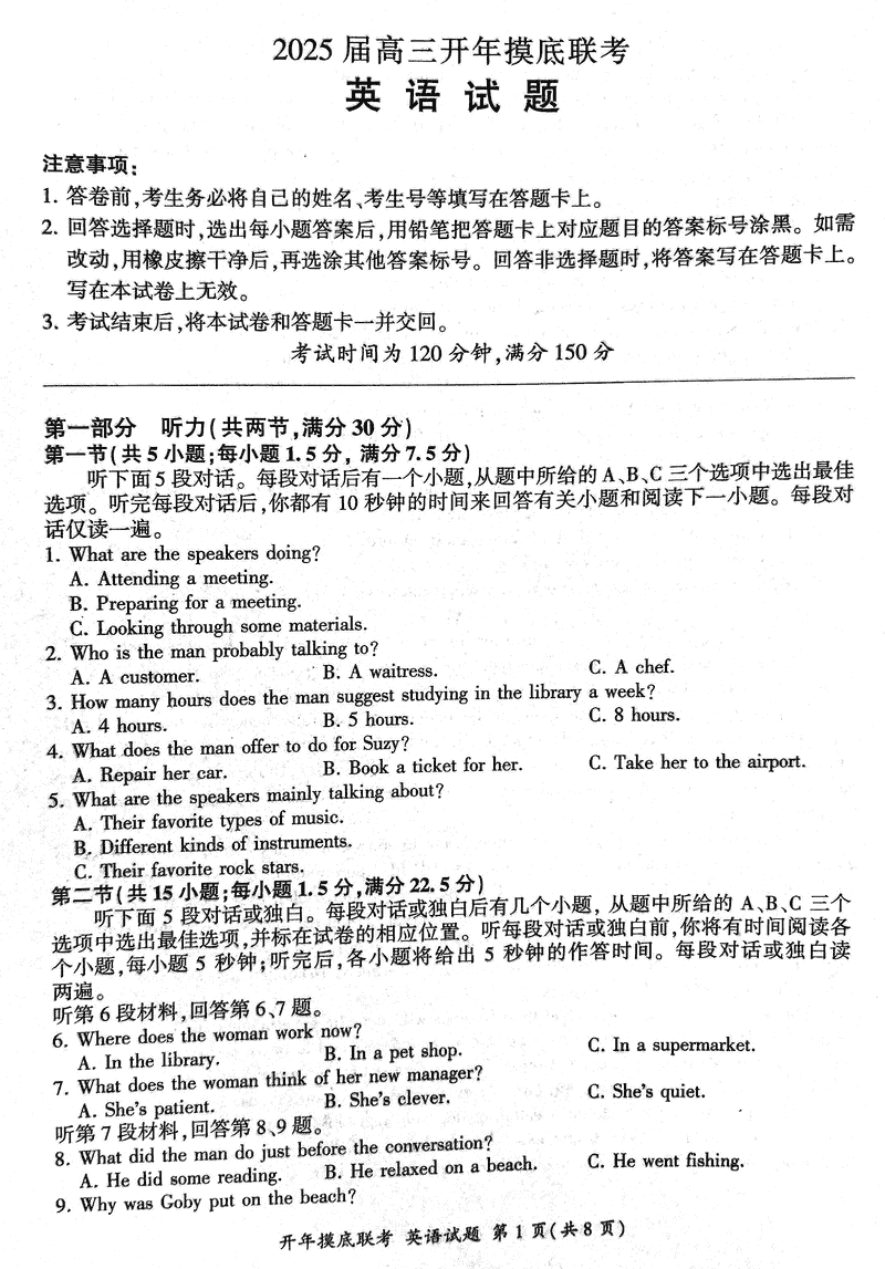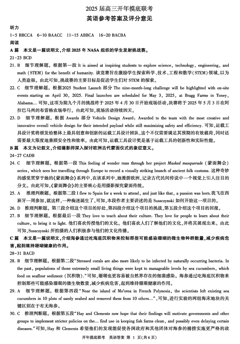 辽宁省百师联盟2025届高三开年摸底联考英语考试已于近日开考,为方便考生考后及时查看考试情况,查漏补缺、弥补不足,本文整理了试题答案解析相关信息!