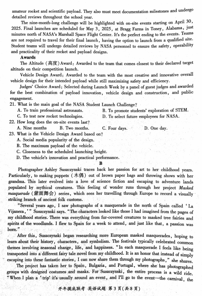 辽宁省百师联盟2025届高三开年摸底联考英语试题及答案