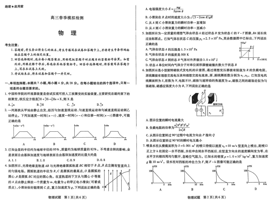 2025届河南省天一大联考高三3月春季模拟检测物理考试已于近日开考,为方便考生考后及时查看考试情况,查漏补缺、弥补不足,本文整理了试题答案解析相关信息!