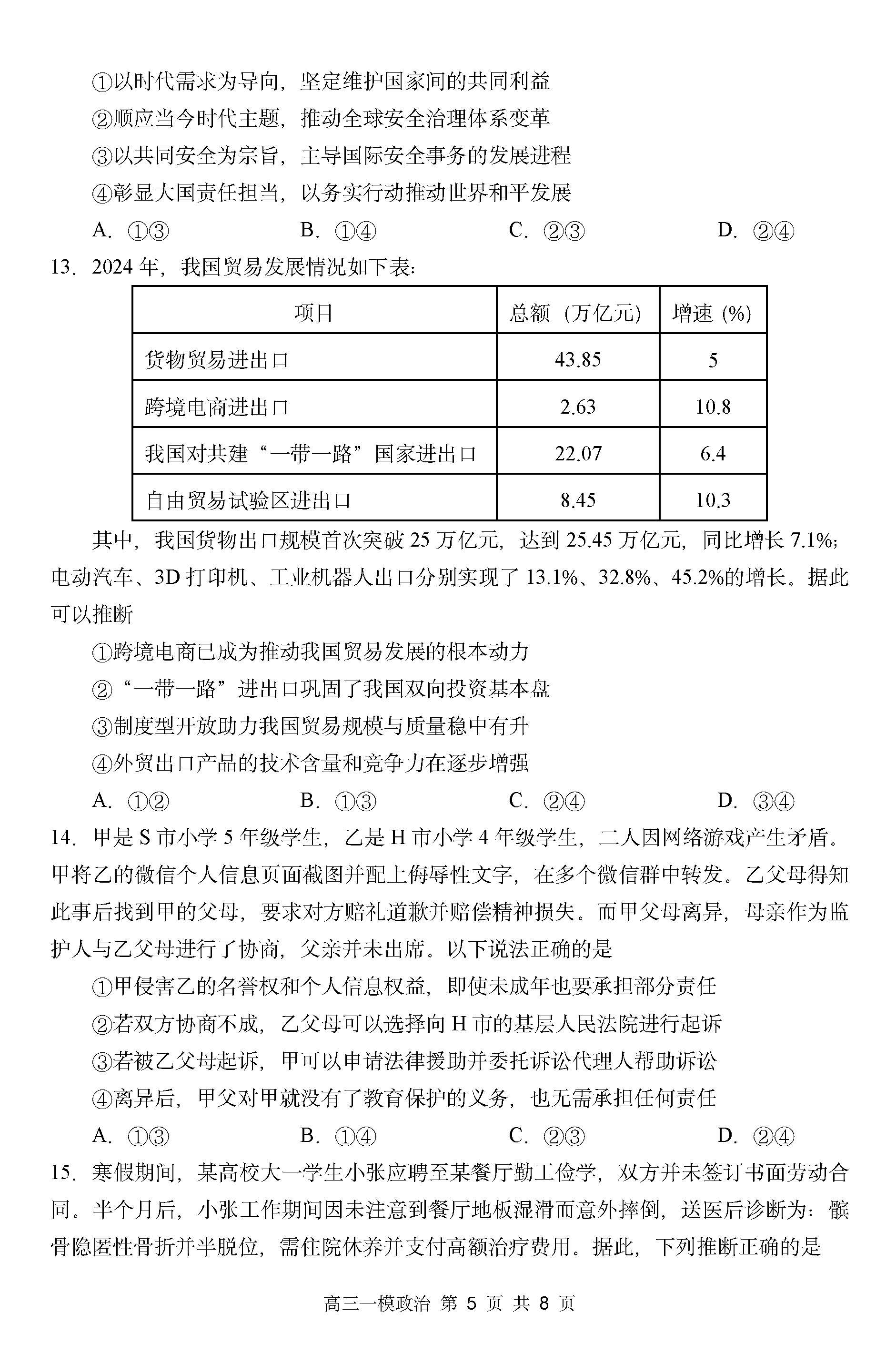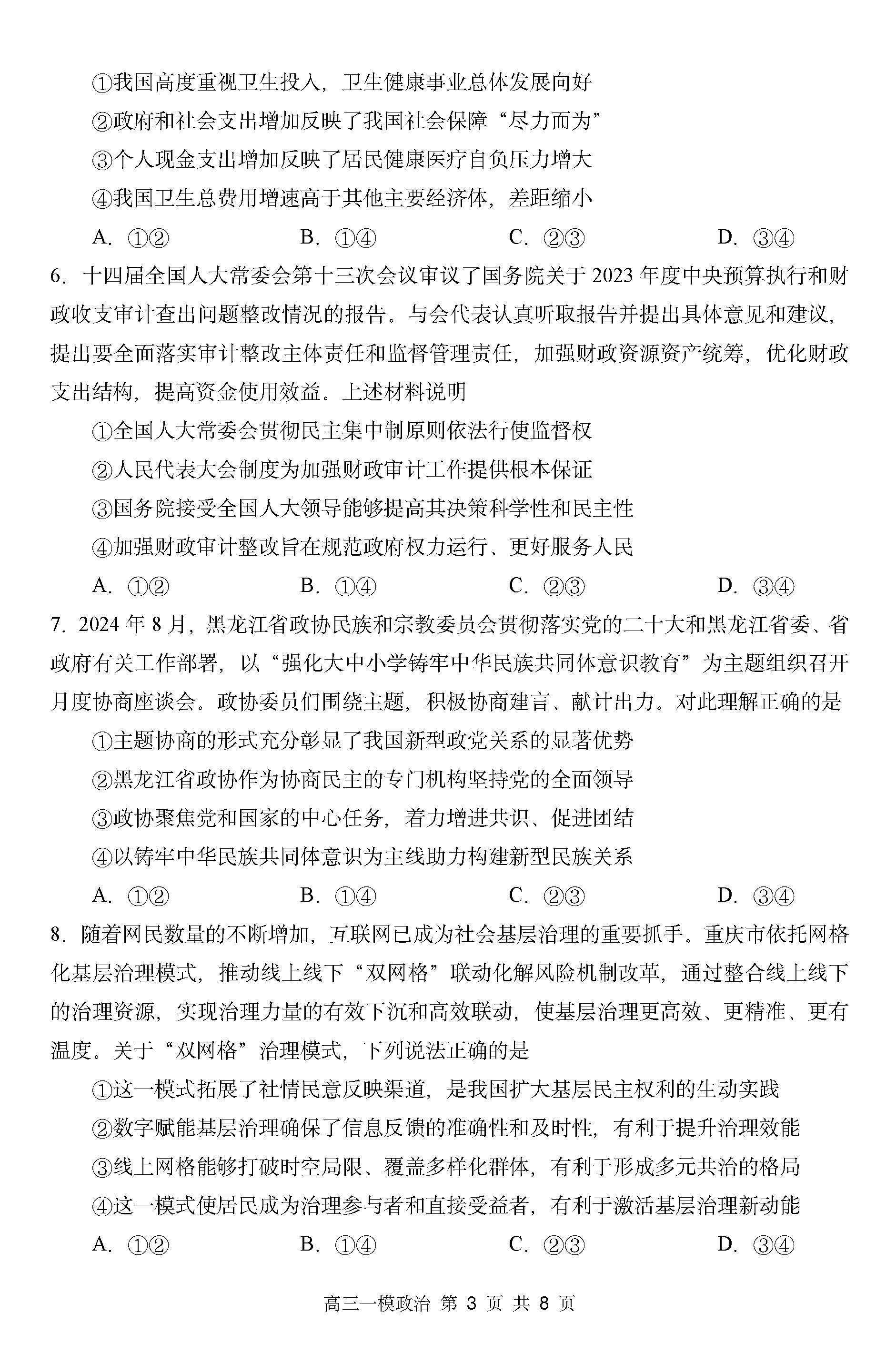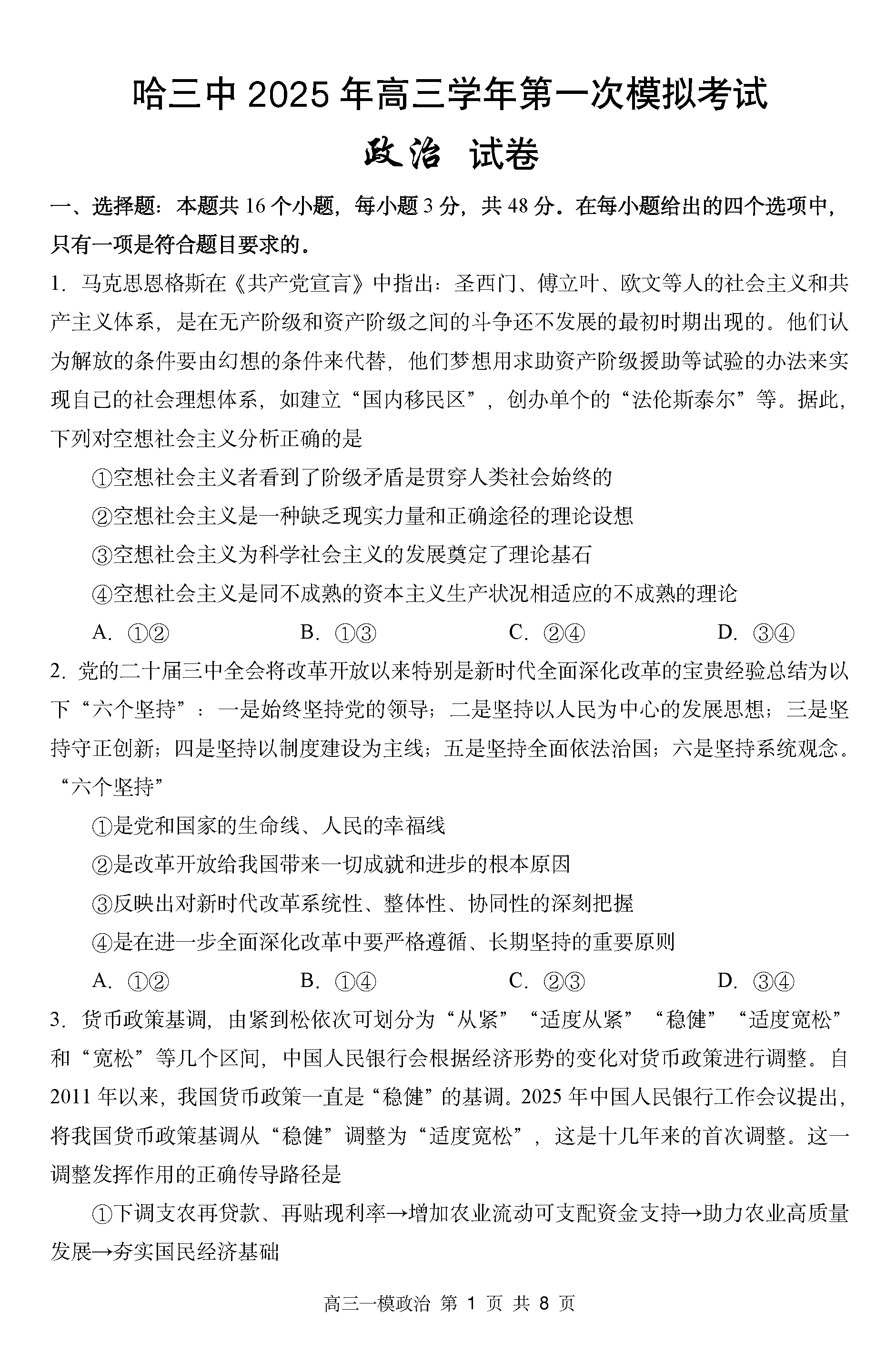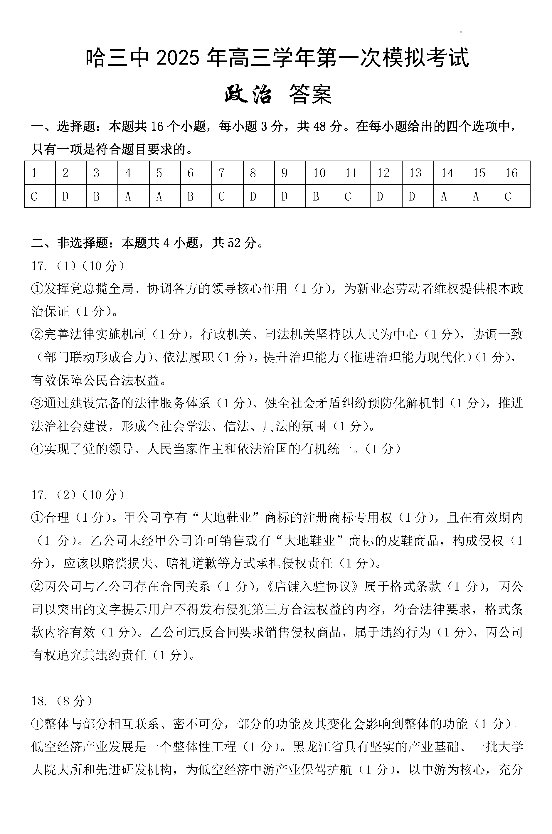 哈三中2025年高三学年第一次模考政治试题及答案 时间:2025-03-06 黑龙江 文综试题 哈三中2025年高三学年第一次模考政治考试已于近日开考,为方便考生考后及时查看考试情况,查漏补缺、弥补不足,本文整理了试题答案解析相关信息! 汇总:哈三中2025年高三学年第一次模拟考试试题及答案汇总 政治试题及答案解析