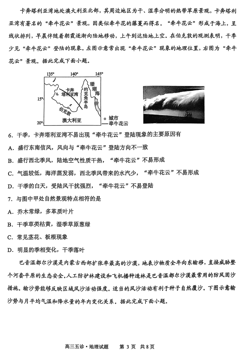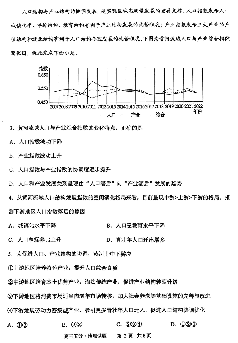 山东省实验中学2025届高三五诊地理试题及答案