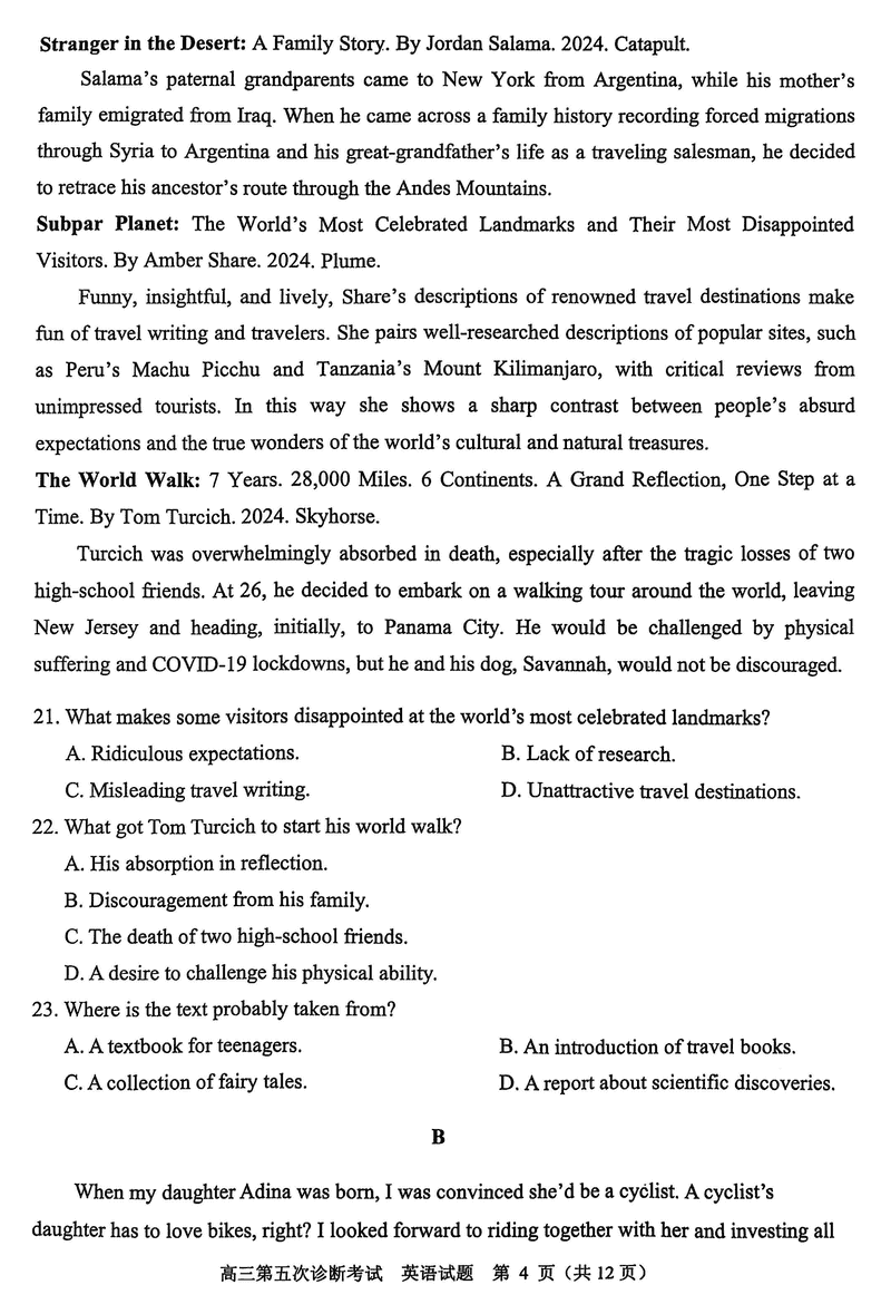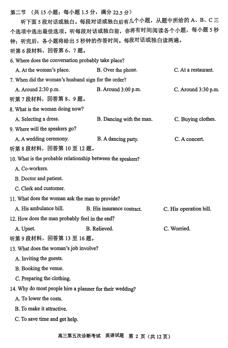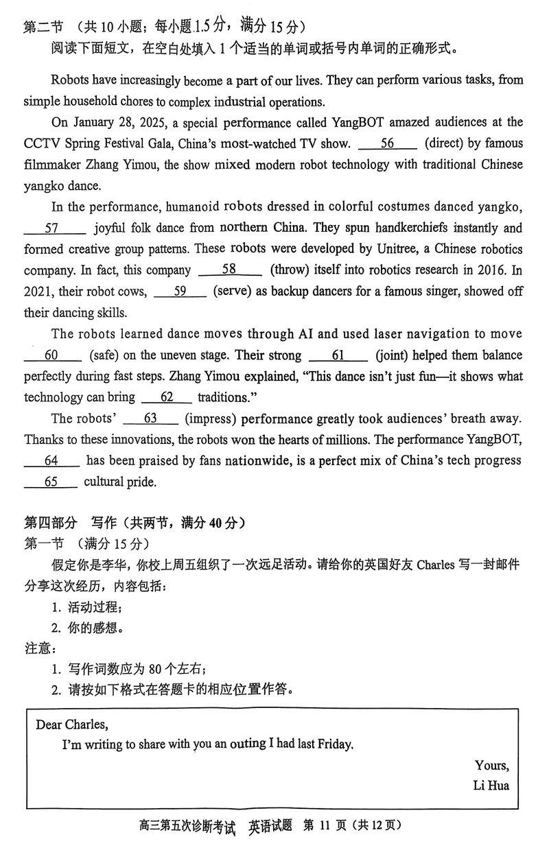 山东省实验中学2025届高三五诊英语试题及答案