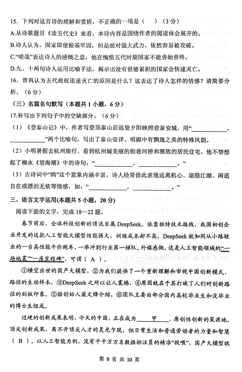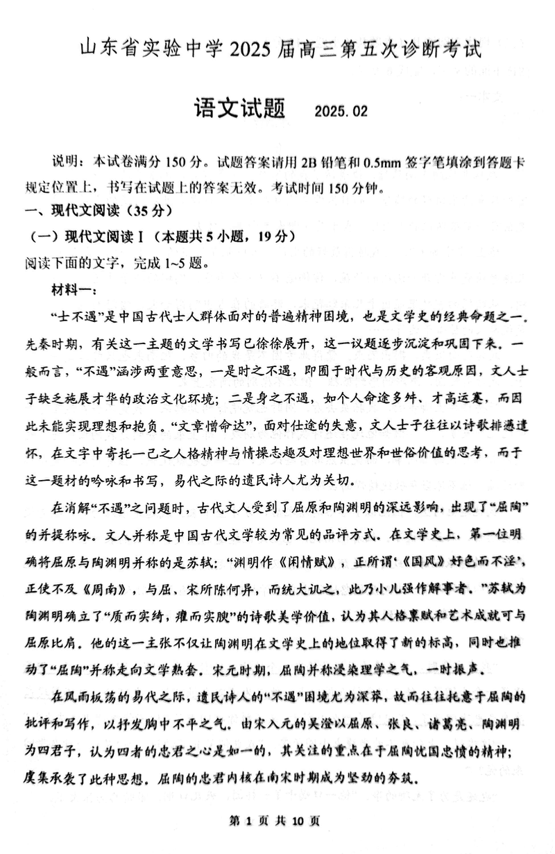 山东省实验中学2025届高三五诊语文考试已于近日开考,为方便考生考后及时查看考试情况,查漏补缺、弥补不足,本文整理了试题答案解析相关信息!