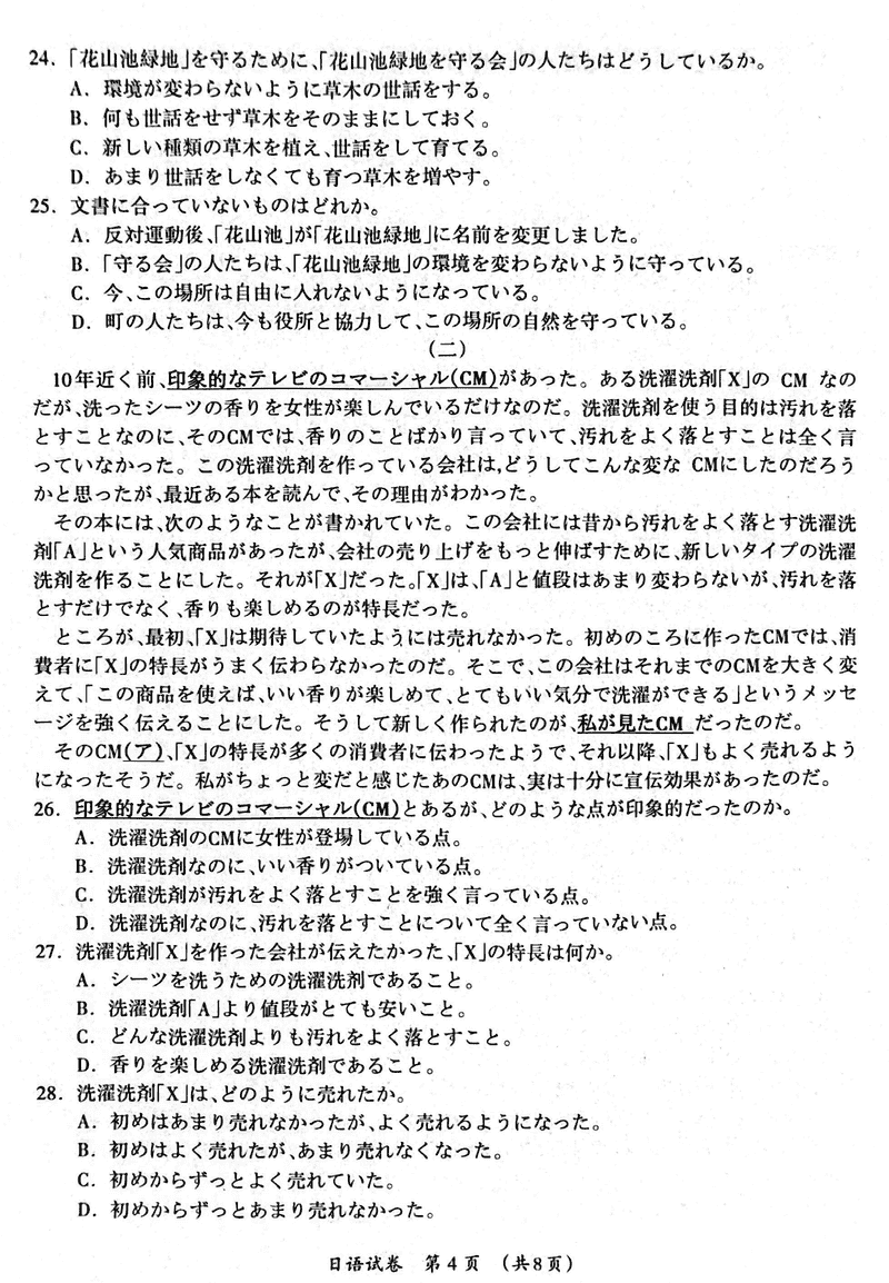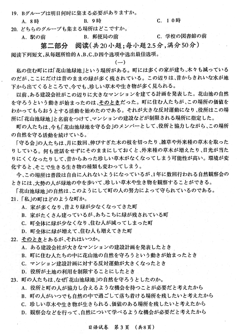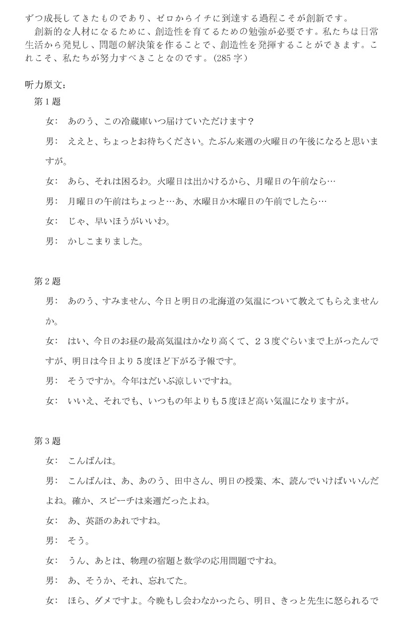 广西2025年3月高三第二次高考适应性测日语试题及答案