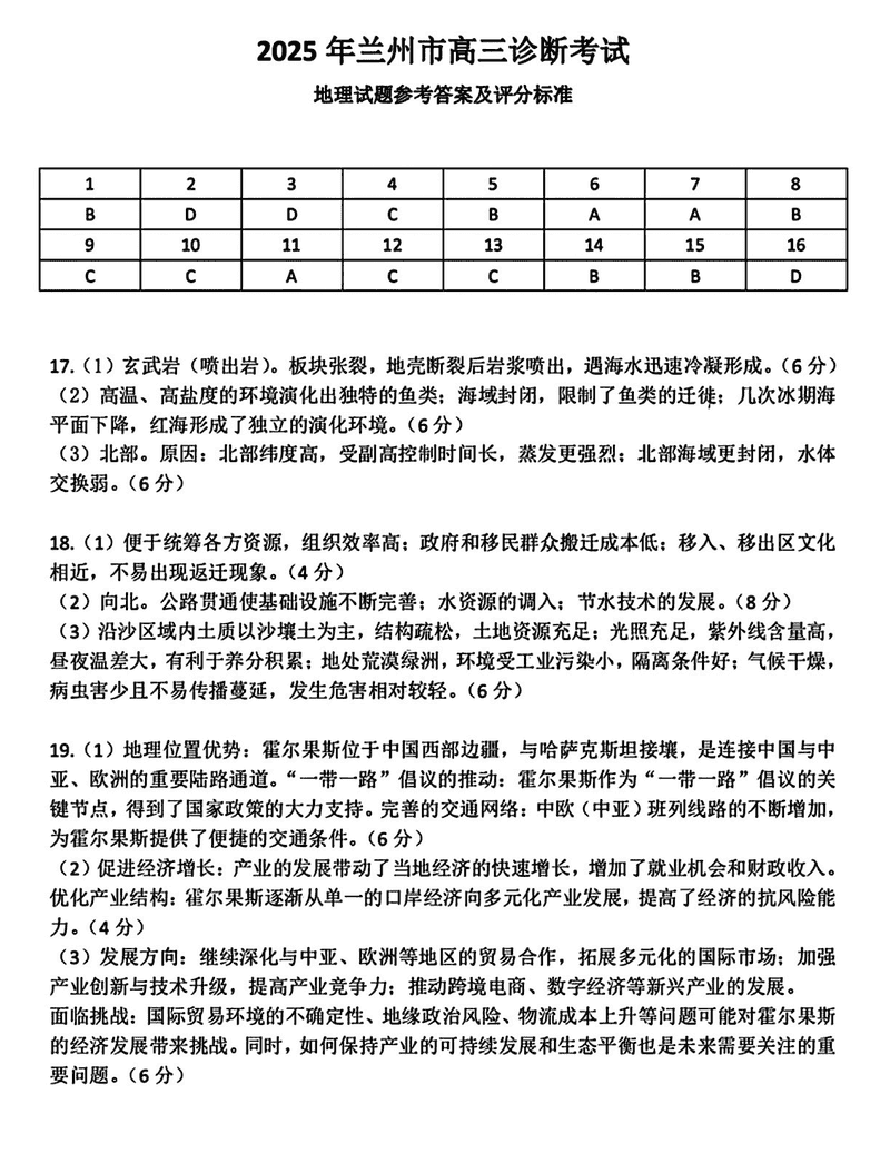 兰州一模2025届高三下学期诊断地理试题及答案 时间:2025-03-09 甘肃 文综试题 兰州一模2025届高三下学期诊断地理考试已于近日开考,为方便考生考后及时查看考试情况,查漏补缺、弥补不足,本文整理了试题答案解析相关信息! 汇总:兰州一模2025届高三下学期诊断考试试题及答案汇总 地理试题及答案解析