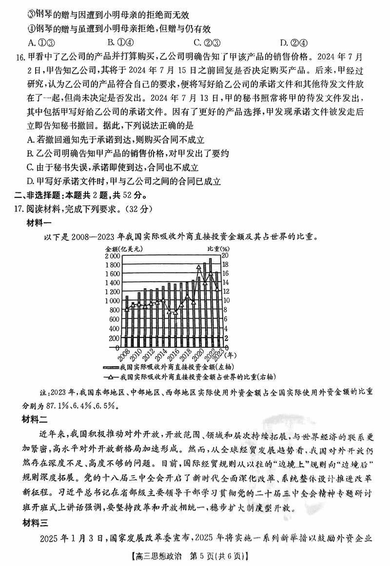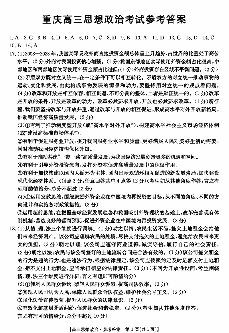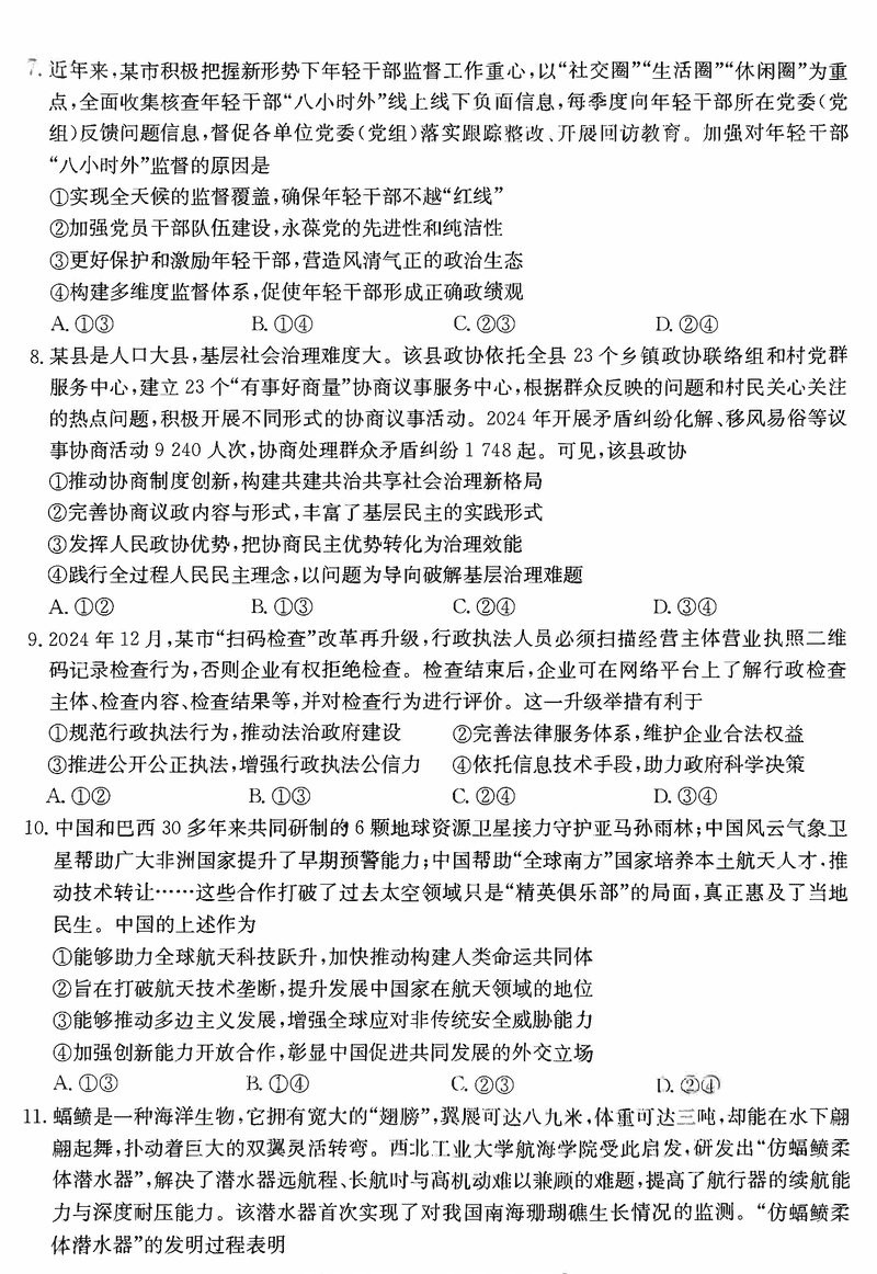 重庆市好教育联盟2025届高三2月联考政治试题及答案 时间:2025-03-09 重庆 文综试题 重庆市好教育联盟2025届高三2月联考政治考试已于近日开考,为方便考生考后及时查看考试情况,查漏补缺、弥补不足,本文整理了试题答案解析相关信息! 汇总:重庆市好教育联盟2025届高三2月联考试题及答案汇总 政治试题及答案解析
