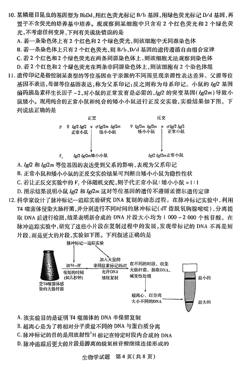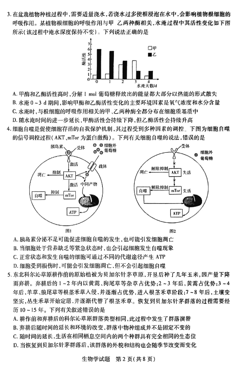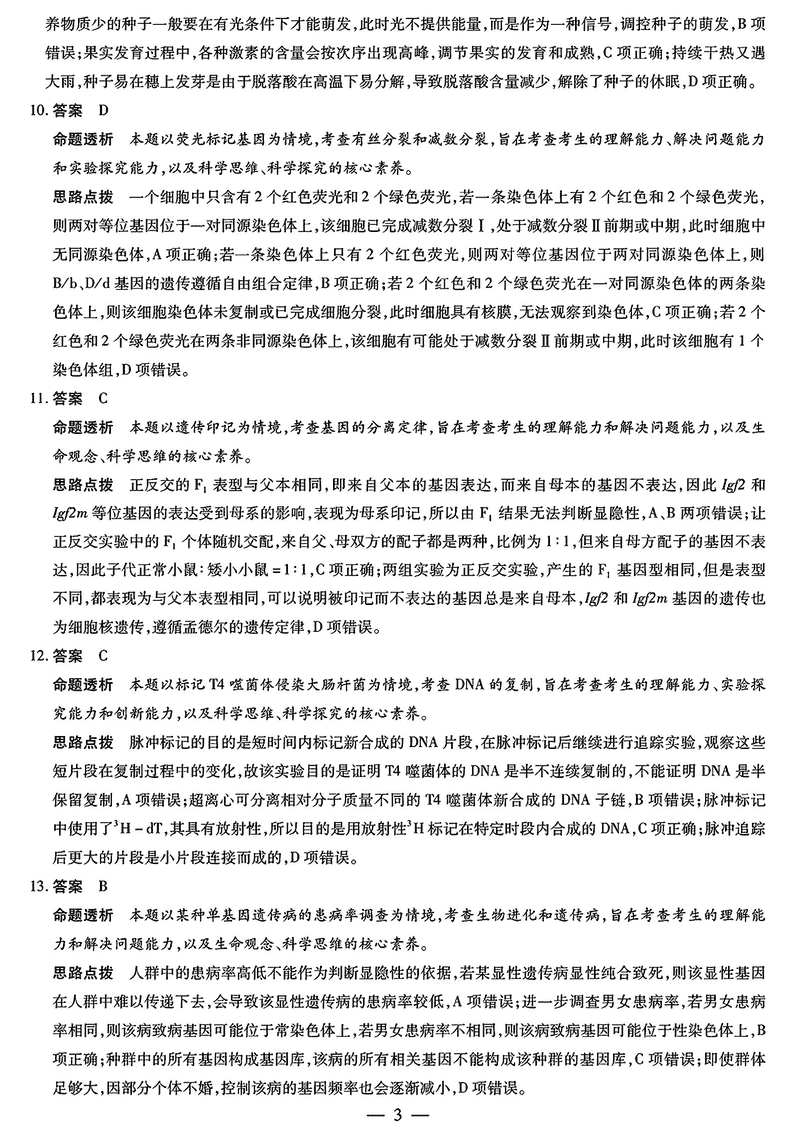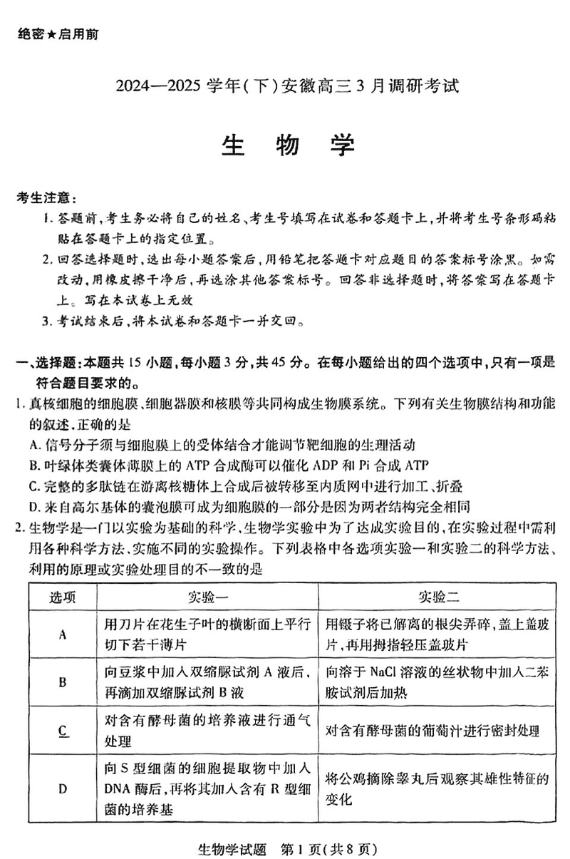 安徽省天一大联考2025届高三3月调研生物试题及答案