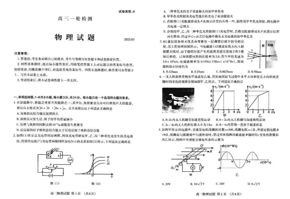 泰安一模2025届高三一轮检测物理试题及答案 时间:2025-03-09 山东 理综试题 泰安一模2025届高三一轮检测物理考试已于近日开考,为方便考生考后及时查看考试情况,查漏补缺、弥补不足,本文整理了试题答案解析相关信息! 汇总:泰安一模2025届高三一轮检测试题及答案汇总 物理试题及答案解析
