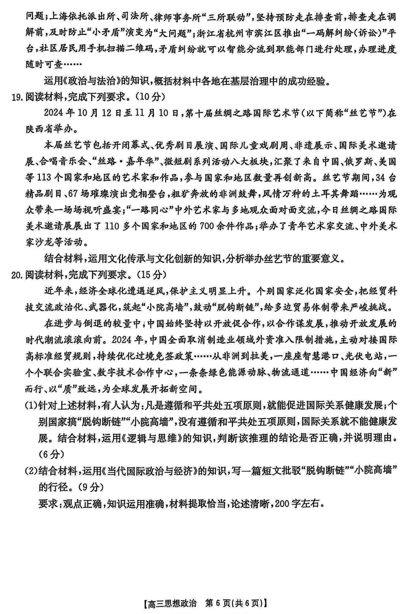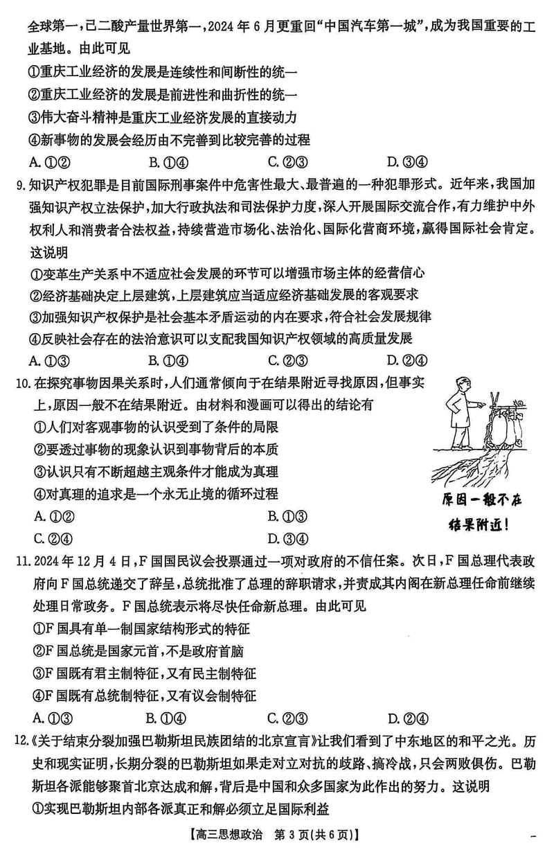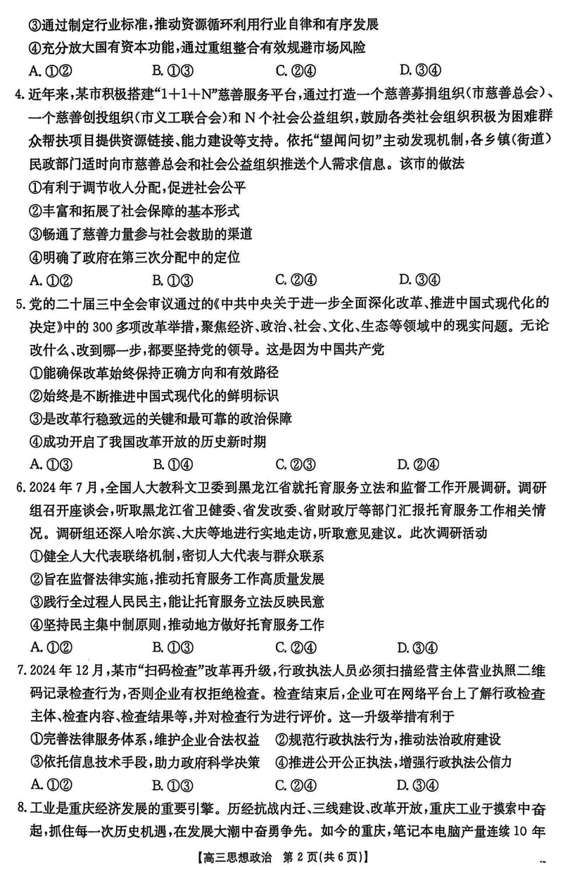 贵州安顺2025届高三下学期3月二模联考政治试题及答案