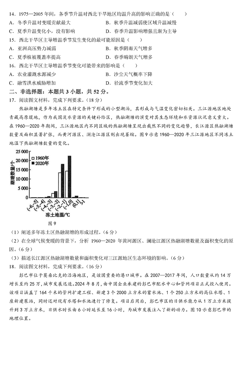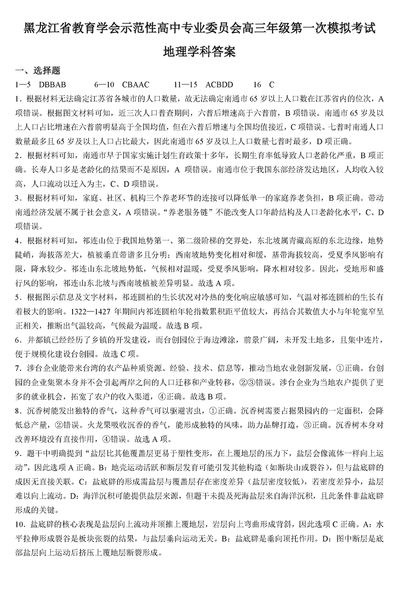 黑龙江教育学会示范性高中专业委员会2025高三第一次模考地理试题及答案
