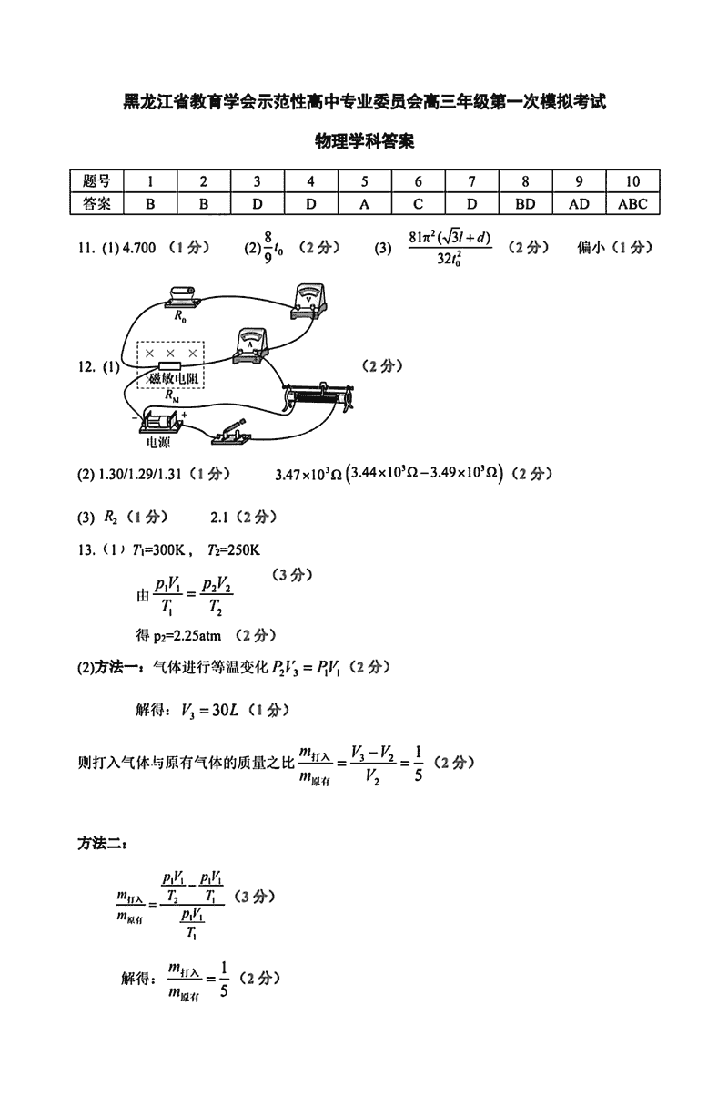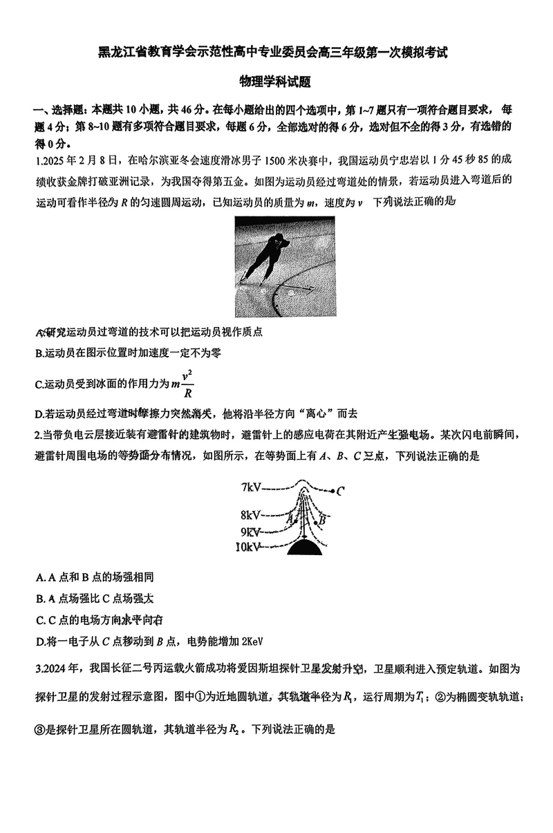 黑龙江教育学会示范性高中专业委员会2025高三第一次模考物理试题及答案