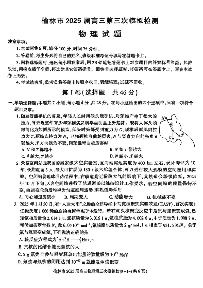陕西榆林2025届高三第三次模拟检测物理试题及答案 时间:2025-03-11 陕西 理综试题 陕西榆林2025届高三第三次模拟检测物理考试已于近日开考,为方便考生考后及时查看考试情况,查漏补缺、弥补不足,本文整理了试题答案解析相关信息! 汇总:陕西榆林2025届高三第三次模拟检测试题及答案汇总 物理试题及答案解析