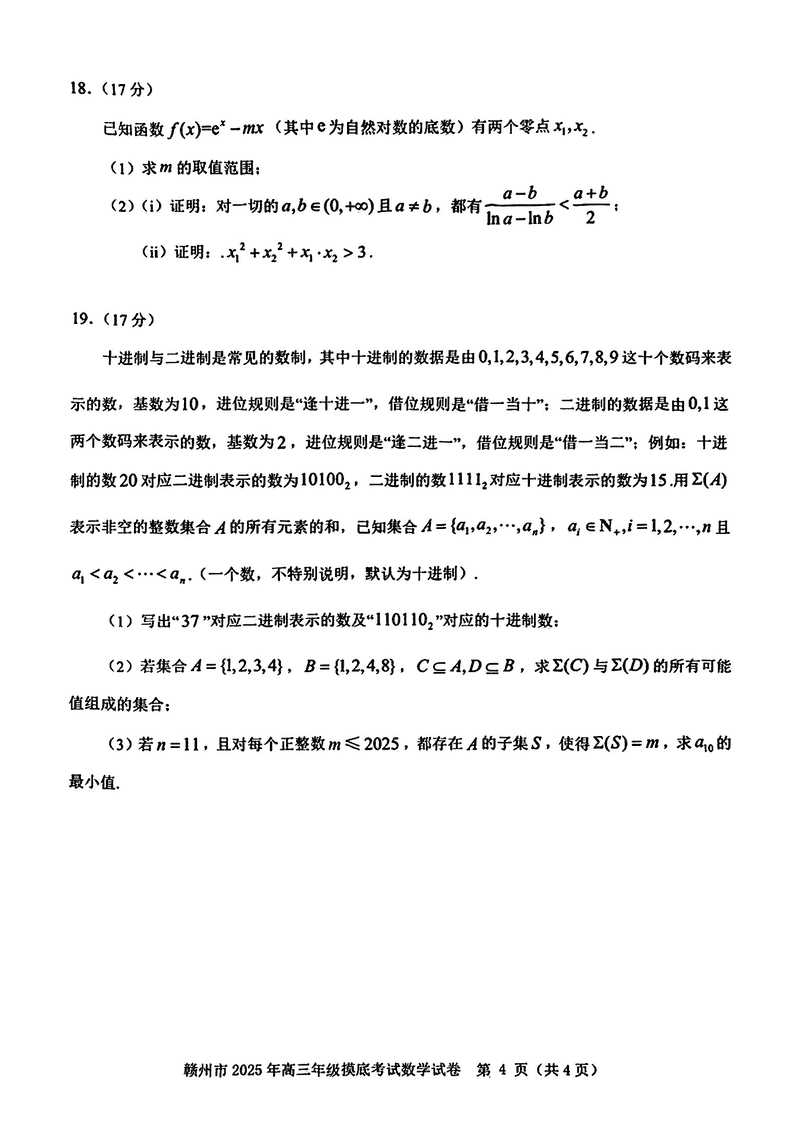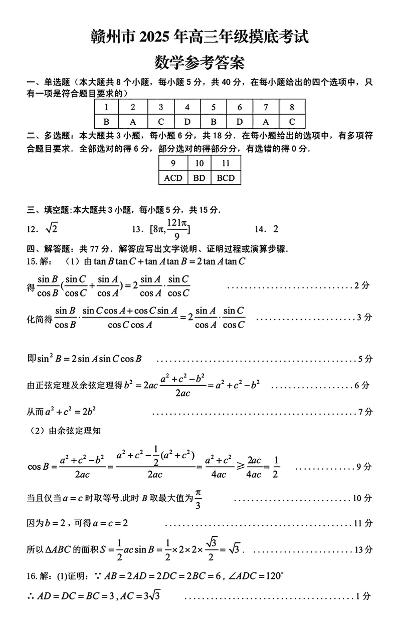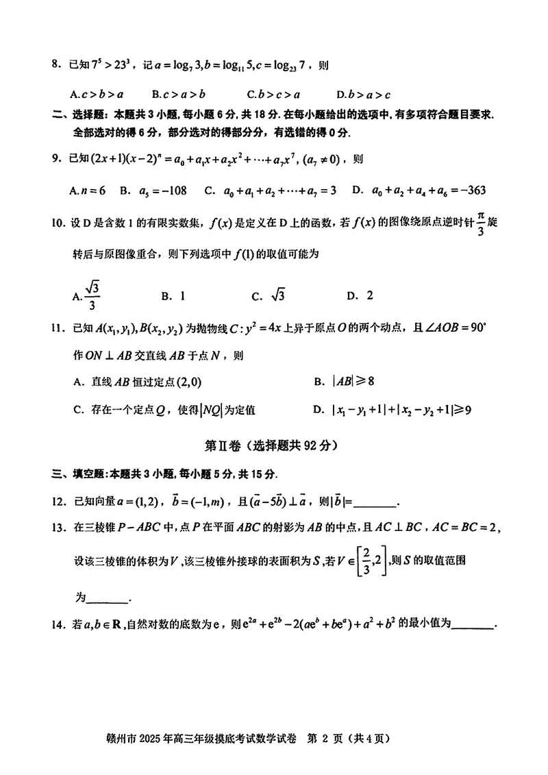 2025届江西赣州高三下学期3月一模数学试题及答案 时间:2025-03-12 江西 数学试题 2025届江西赣州高三下学期3月一模数学考试已于近日开考,为方便考生考后及时查看考试情况,查漏补缺、弥补不足,本文整理了试题答案解析相关信息! 汇总:2025届江西赣州高三下学期3月一模试题及答案汇总 数学试题及答案解析