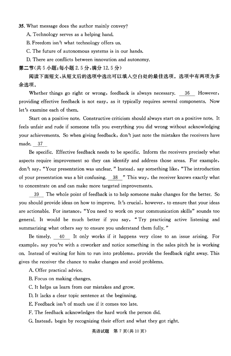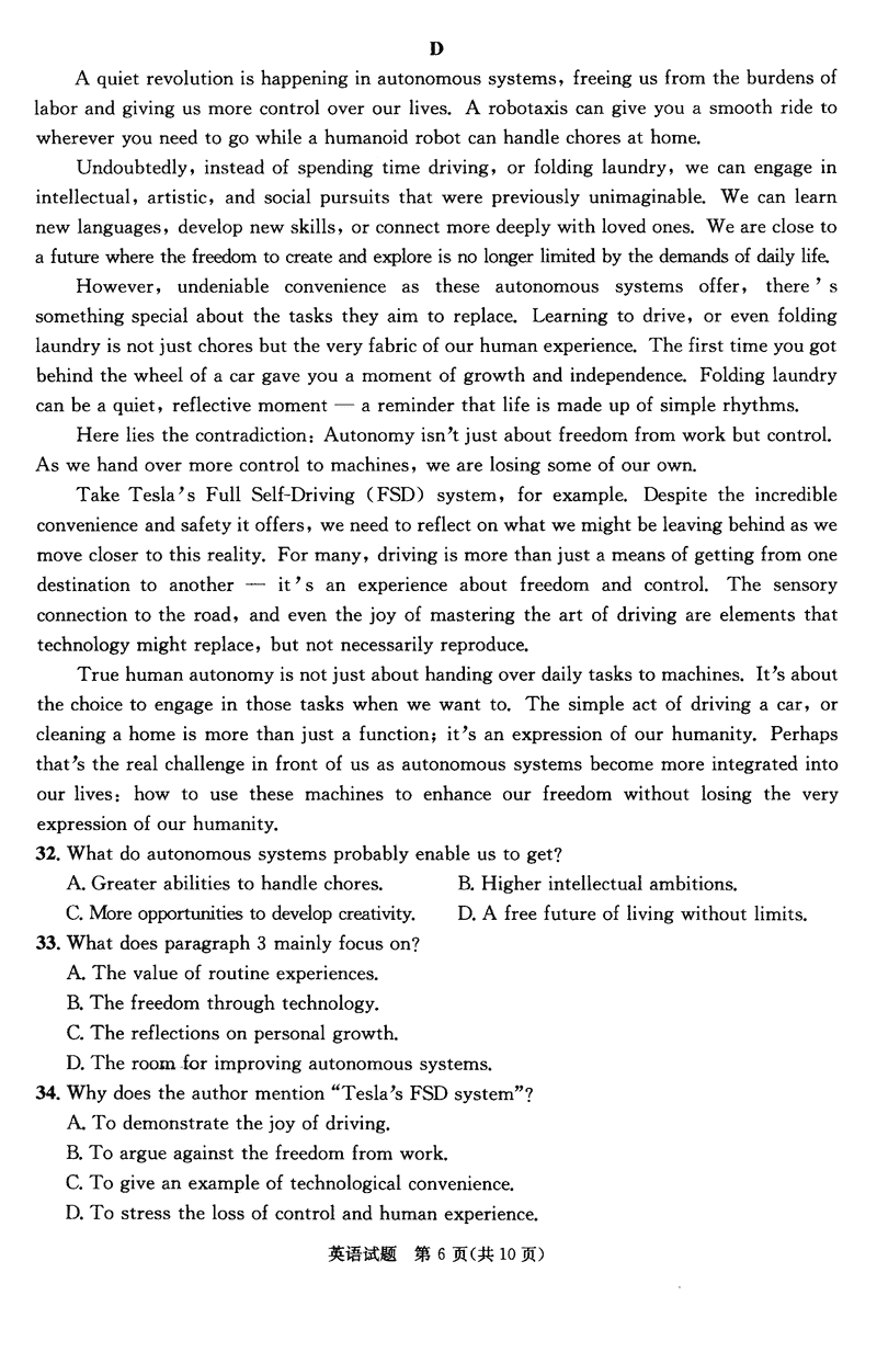 四川成都2025届高三第二次诊断性检测英语试题及答案