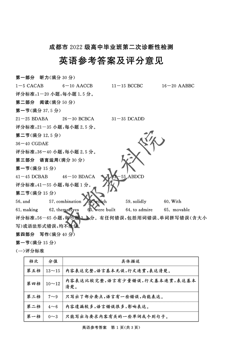 四川成都2025届高三第二次诊断性检测英语考试已于近日开考,为方便考生考后及时查看考试情况,查漏补缺、弥补不足,本文整理了试题答案解析相关信息!