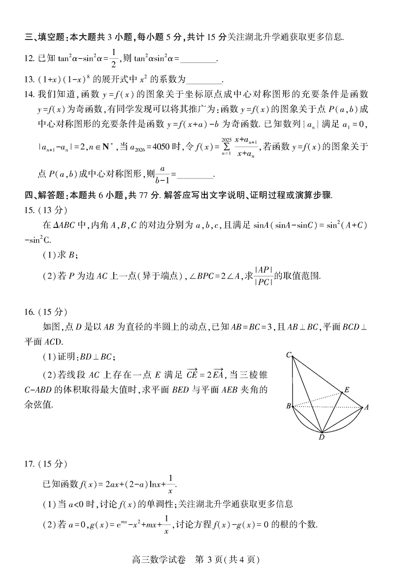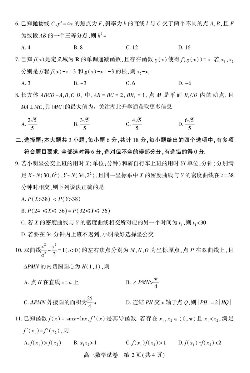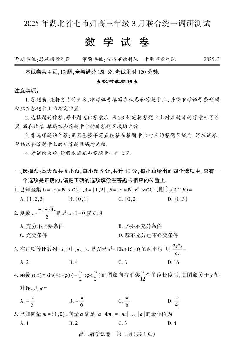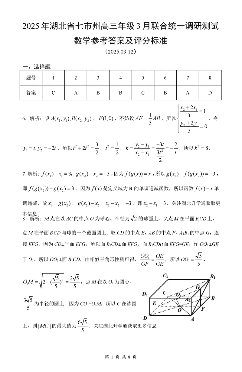2025年湖北省七市州高三3月联合统一调研测试数学考试已于近日开考,为方便考生考后及时查看考试情况,查漏补缺、弥补不足,本文整理了试题答案解析相关信息!
