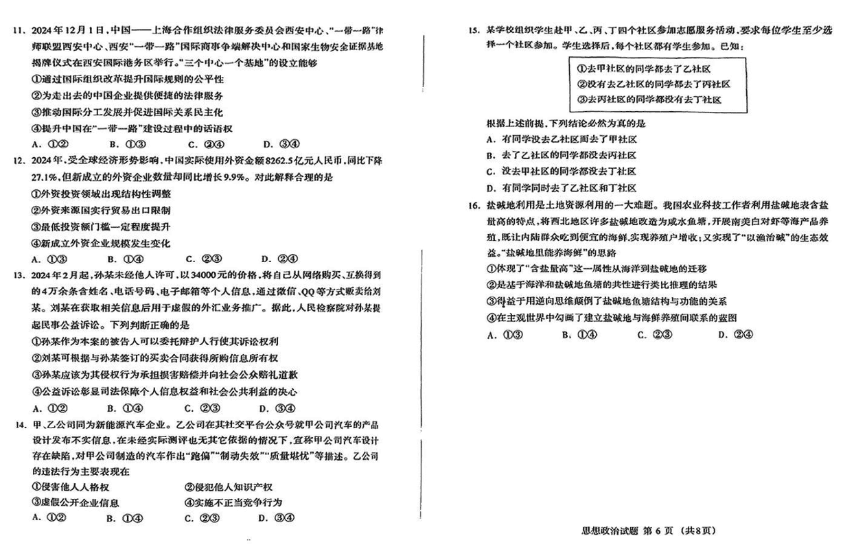 呼和浩特2025届高三一模政治试题及答案 时间:2025-03-14 内蒙 文综试题 呼和浩特2025届高三一模政治考试已于近日开考,为方便考生考后及时查看考试情况,查漏补缺、弥补不足,本文整理了试题答案解析相关信息! 汇总:呼和浩特市2025届高三第一次模拟考试试题及答案汇总 政治试题及答案解析