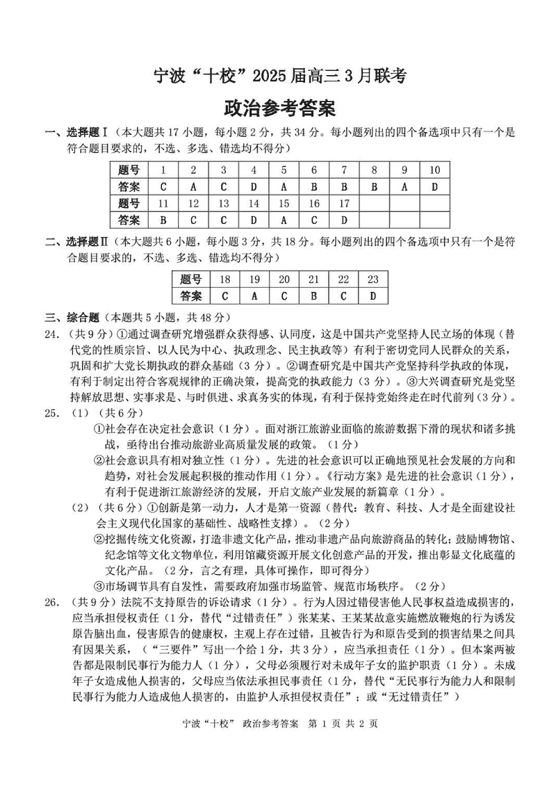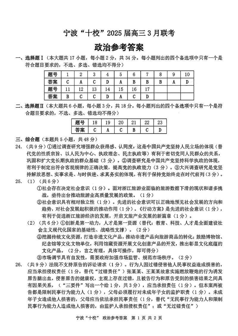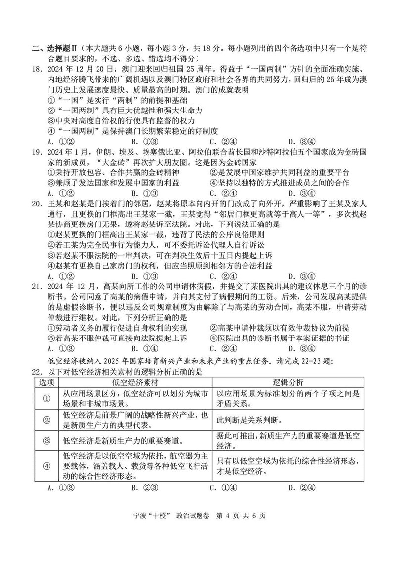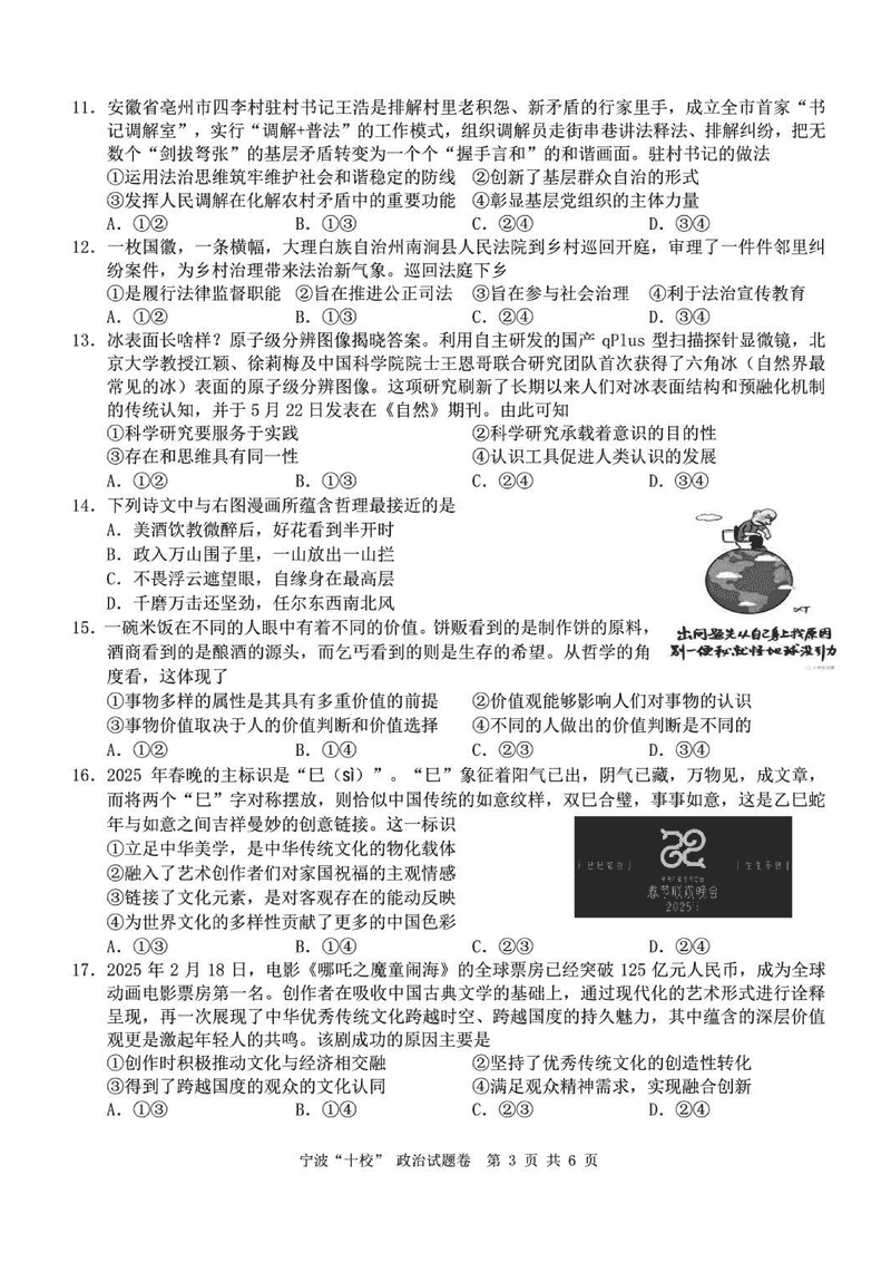 宁波十校2025届高三3月联考政治试题及答案 时间:2025-03-15 浙江 文综试题 宁波十校2025届高三3月联考政治考试已于近日开考,为方便考生考后及时查看考试情况,查漏补缺、弥补不足,本文整理了试题答案解析相关信息! 汇总:宁波十校2025届高三3月联考试题及答案汇总 政治试题及答案解析