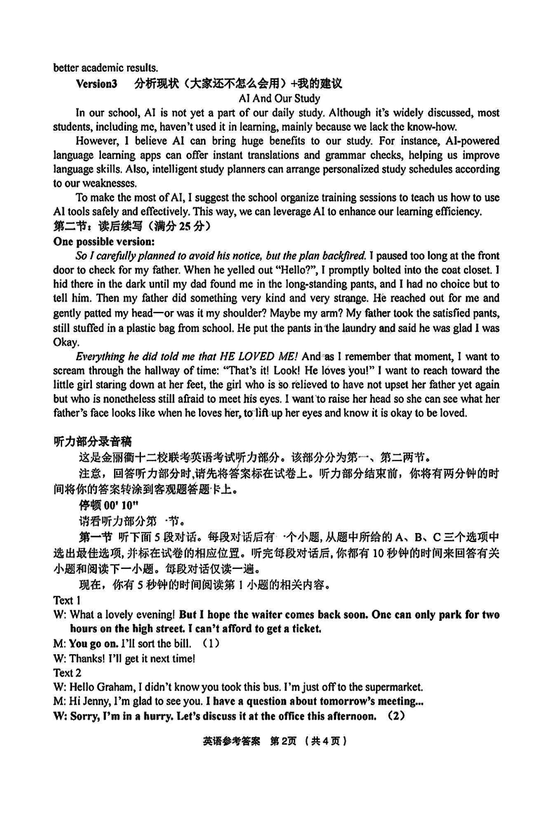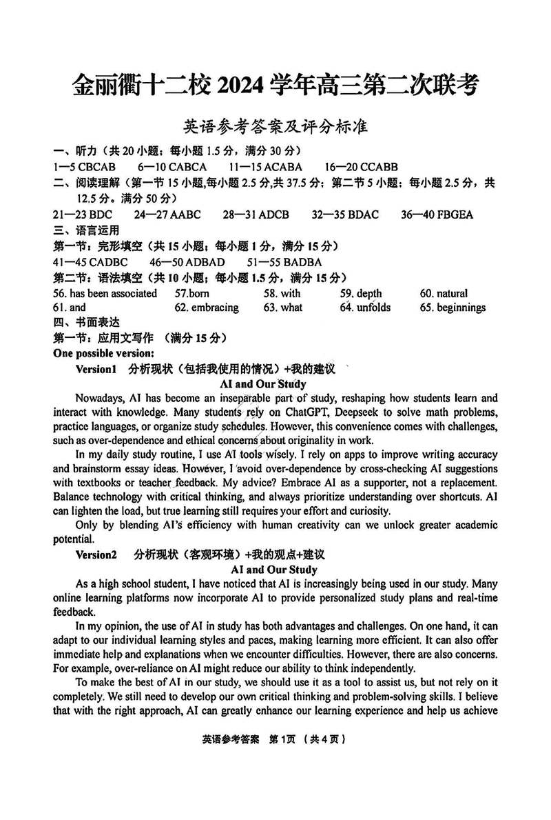 金丽衢十二校2025届高三第二次联考英语试题及答案