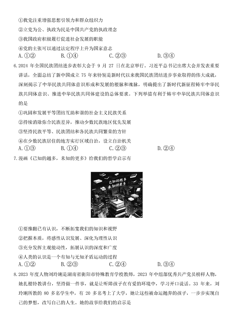 湖南长郡中学2025届高三月考试卷(七)政治试题及答案