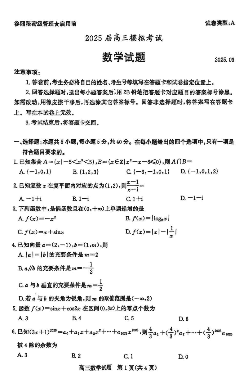 枣庄二调2025届高三模考数学试题及答案 时间:2025-03-20 山东 数学试题 枣庄二调2025届高三模考数学考试已于近日开考,为方便考生考后及时查看考试情况,查漏补缺、弥补不足,本文整理了试题答案解析相关信息! 汇总:枣庄二调2025届高三模拟考试试题及答案汇总 数学试题及答案解析