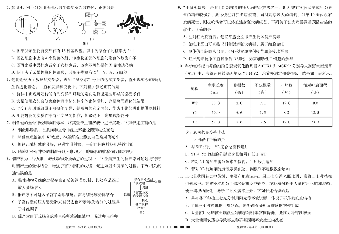 2025届云南三校高三高考备考实用性联考卷(七)生物试题及答案汇总