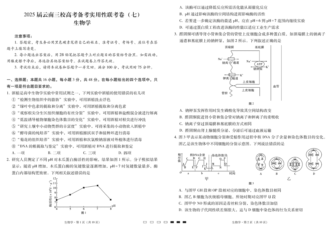 2025届云南三校高三高考备考实用性联考卷(七)生物考试已于近日开考,为方便考生考后及时查看考试情况,查漏补缺、弥补不足,本文整理了试题答案解析相关信息!