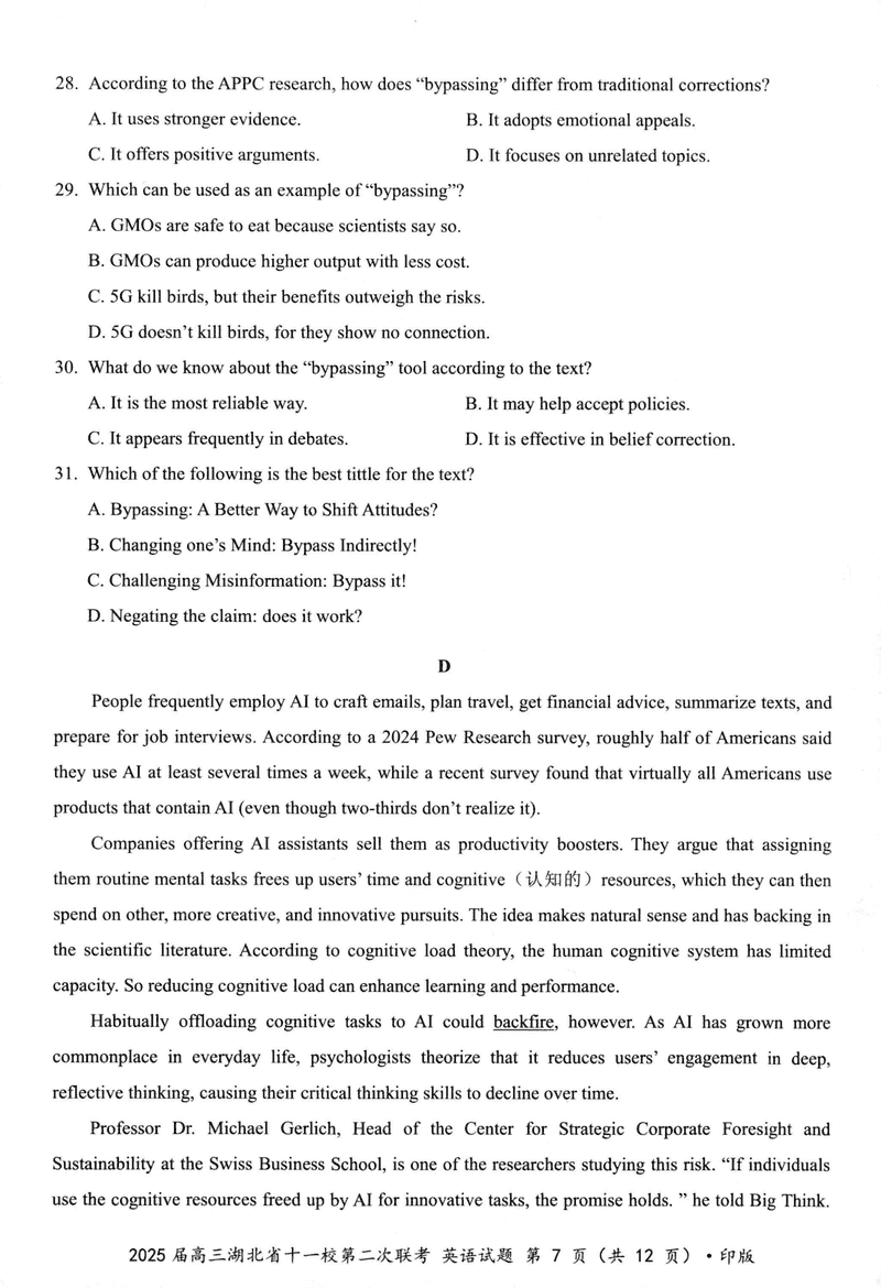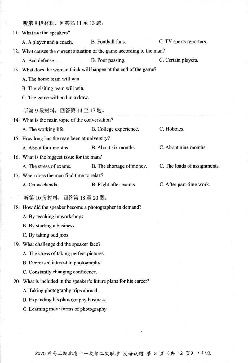 湖北省十一校2025届高三第二次联考英语试题及答案汇总 时间:2025-03-27 湖北 英语试题 湖北省十一校2025届高三第二次联考英语考试已于近日开考,为方便考生考后及时查看考试情况,查漏补缺、弥补不足,本文整理了试题答案解析相关信息! 汇总:湖北省十一校2025届高三第二次联考试题及答案汇总 英语试题及答案解析