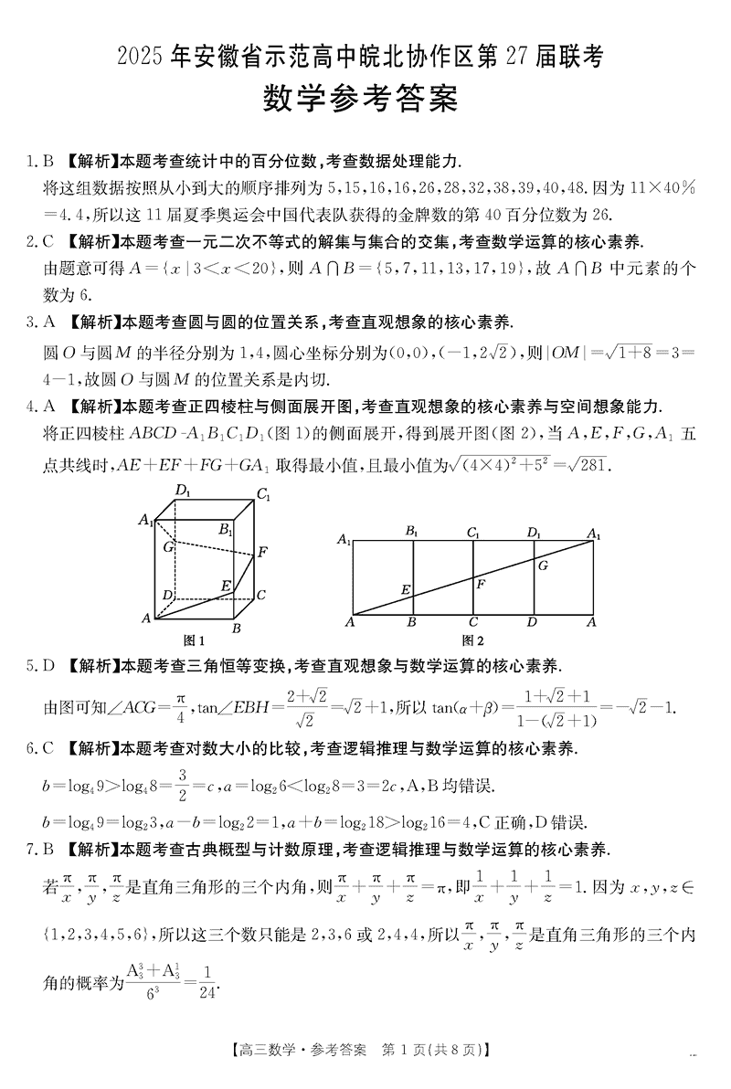 2025年安徽省示范高中皖北协作区第27届联考数学考试已于近日开考,为方便考生考后及时查看考试情况,查漏补缺、弥补不足,本文整理了试题答案解析相关信息!