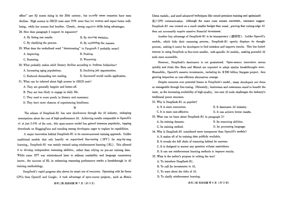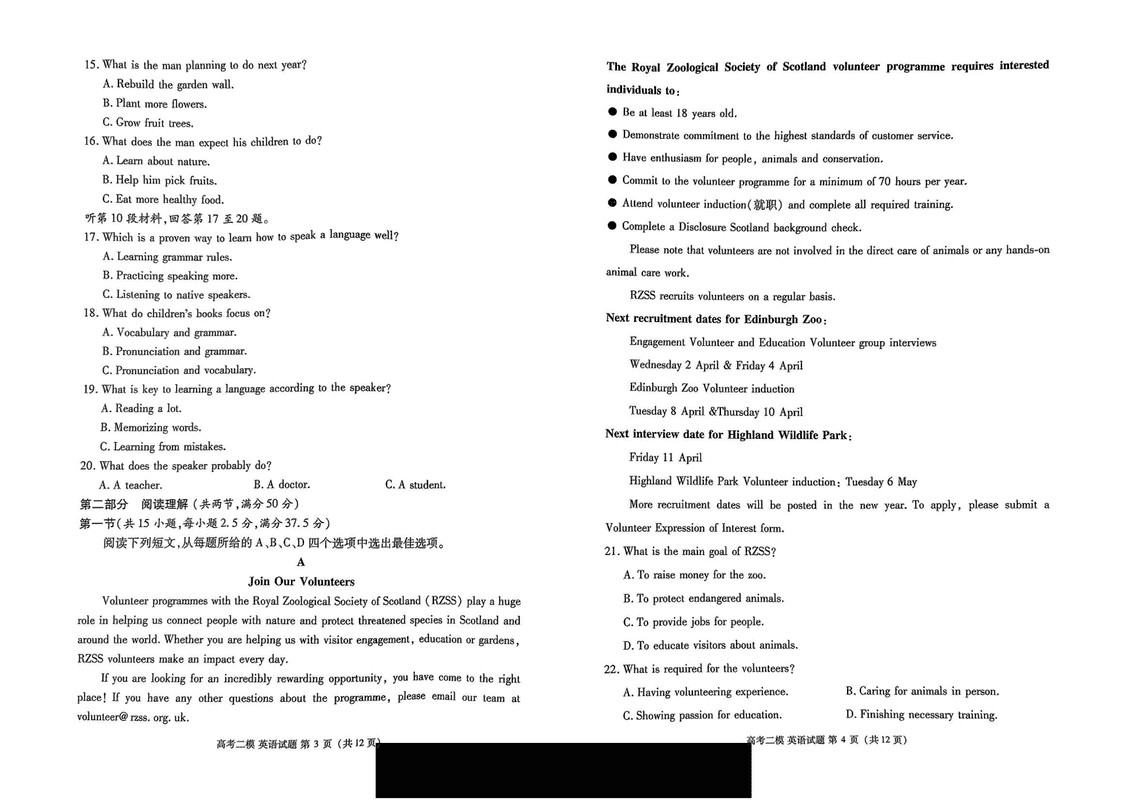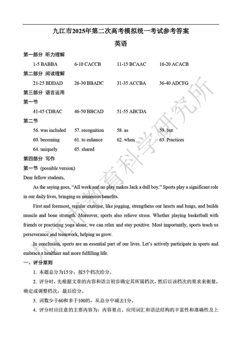江西省九江市2025年第二次模考英语考试已于近日开考,为方便考生考后及时查看考试情况,查漏补缺、弥补不足,本文整理了试题答案解析相关信息!