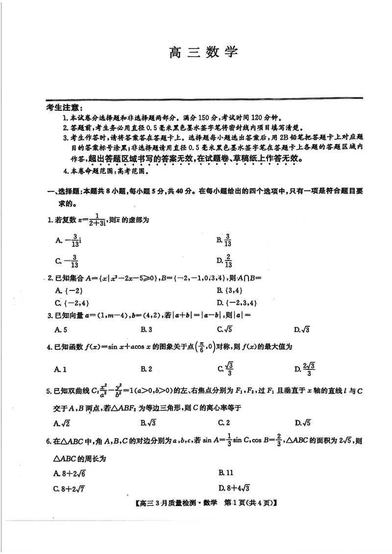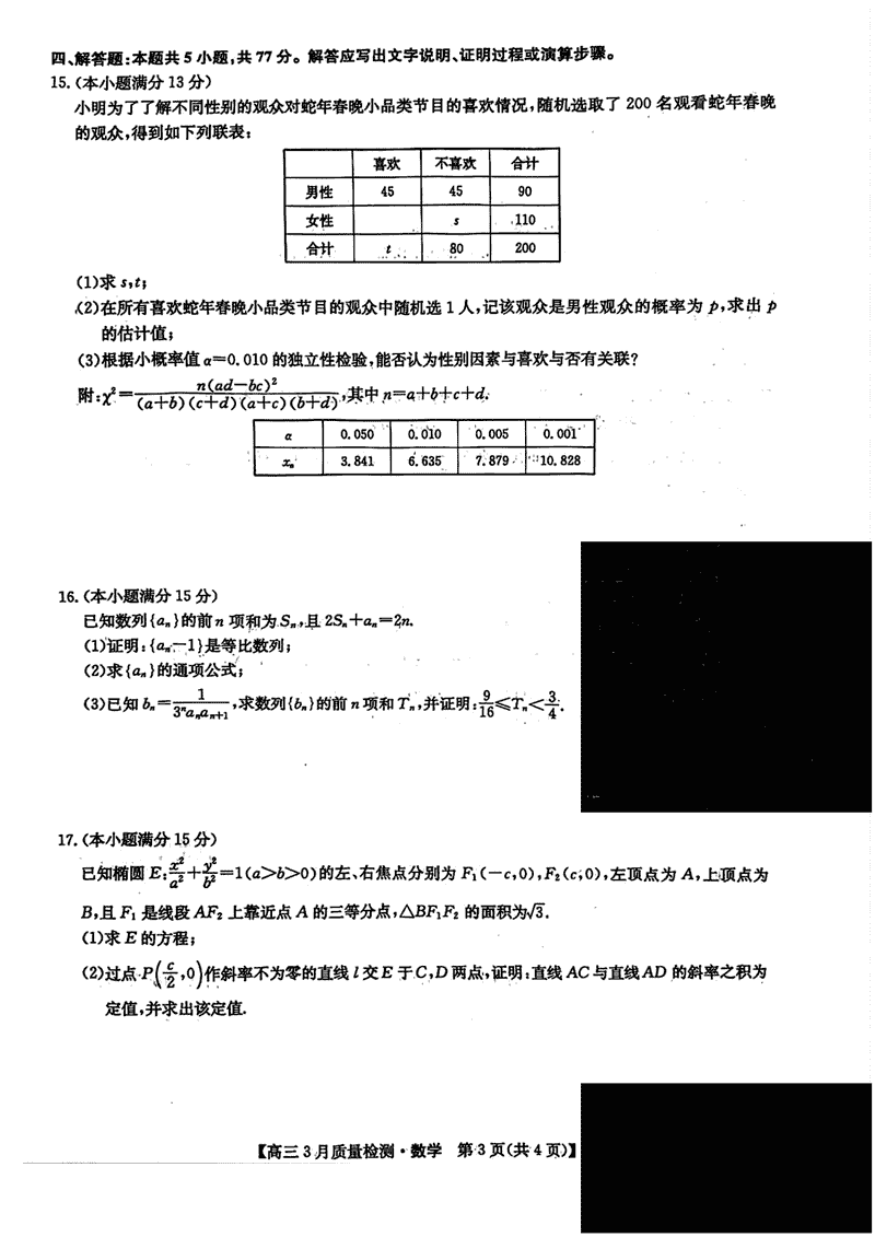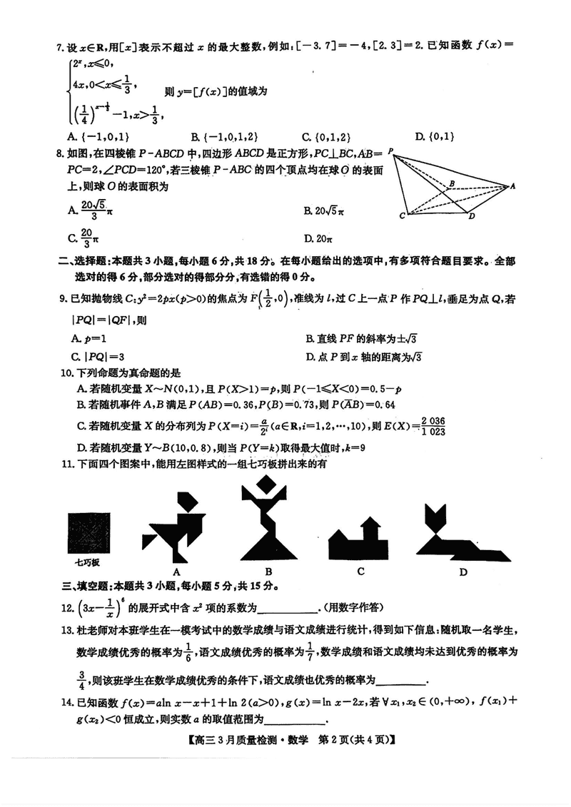 九师联盟2025届高三3月质量检测数学试题及答案 时间:2025-03-31 数学试题 九师联盟2025届高三3月质量检测数学考试已于近日开考,为方便考生考后及时查看考试情况,查漏补缺、弥补不足,本文整理了试题答案解析相关信息! 汇总:九师联盟2025届高三3月质量检测试题及答案汇总 数学试题及答案解析