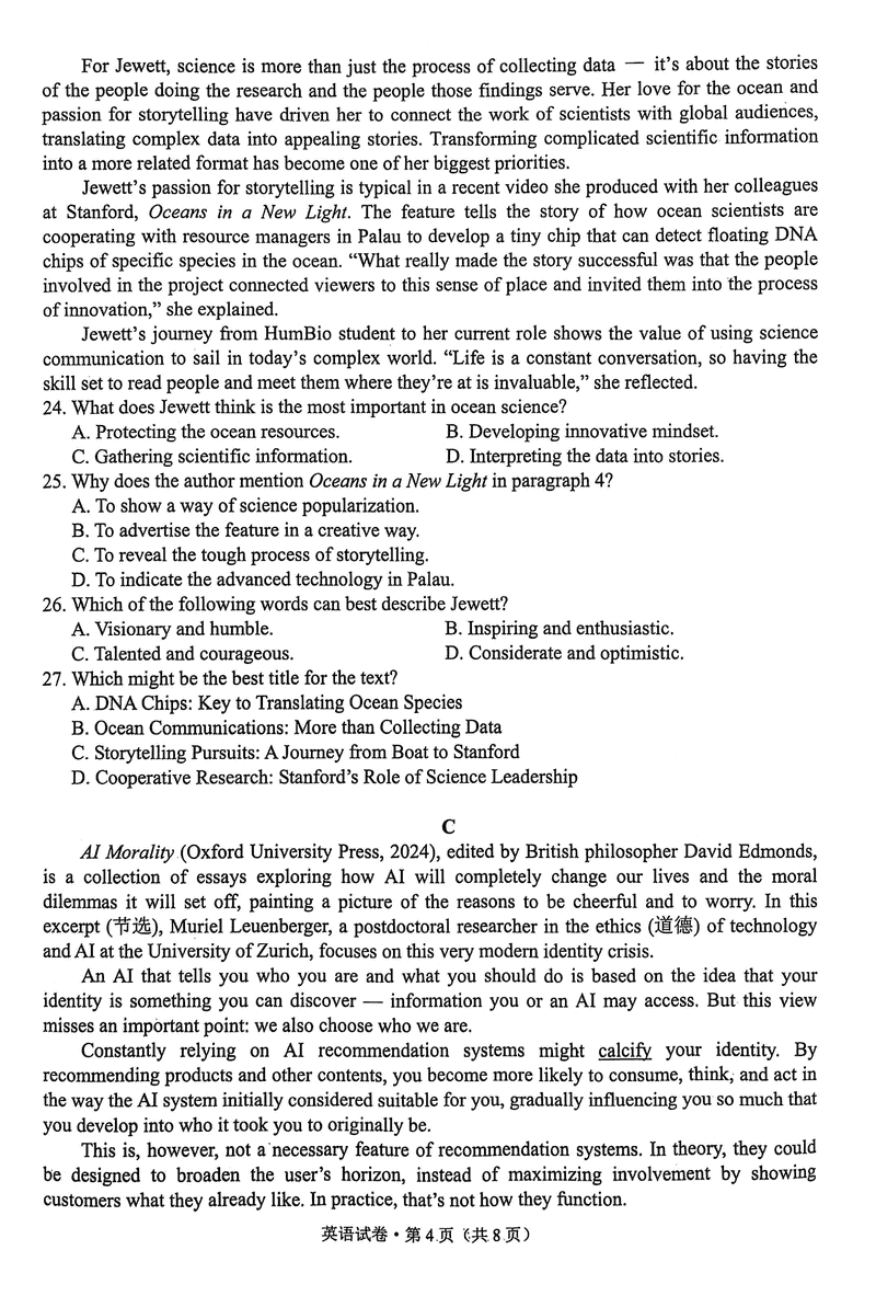 昆明市2025届“三诊一模”高三复习教学质检英语试题及答案