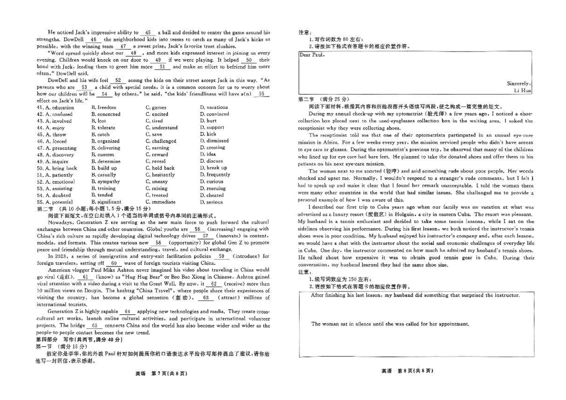 辽宁省县域重点高中2025年高三二模英语试题及答案