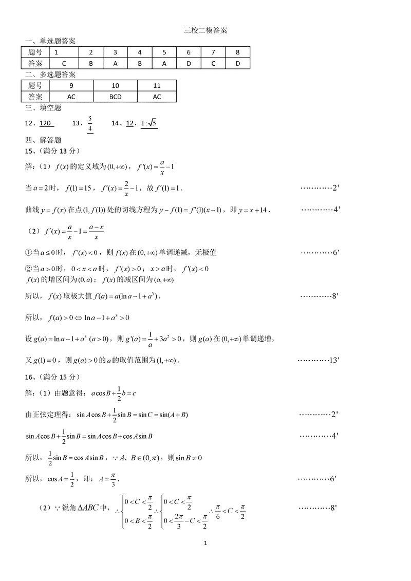 东北三省三校2025届高三二模数学试题及答案