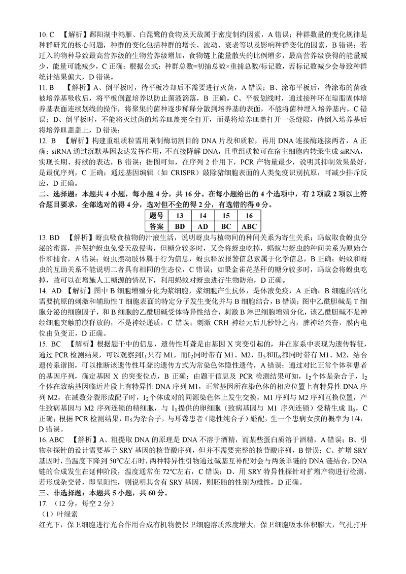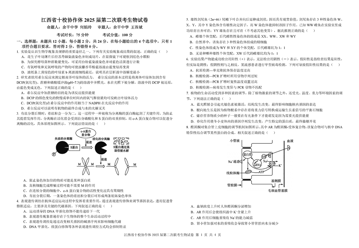 江西省十校协作体2025届高三第二次联考生物试题及答案