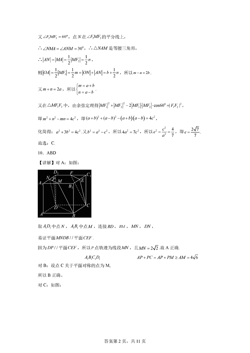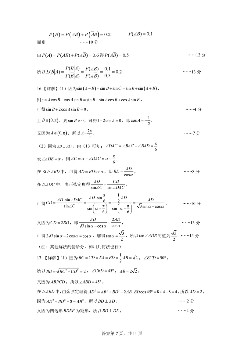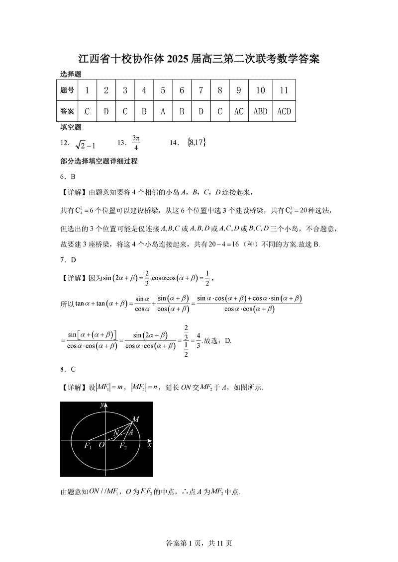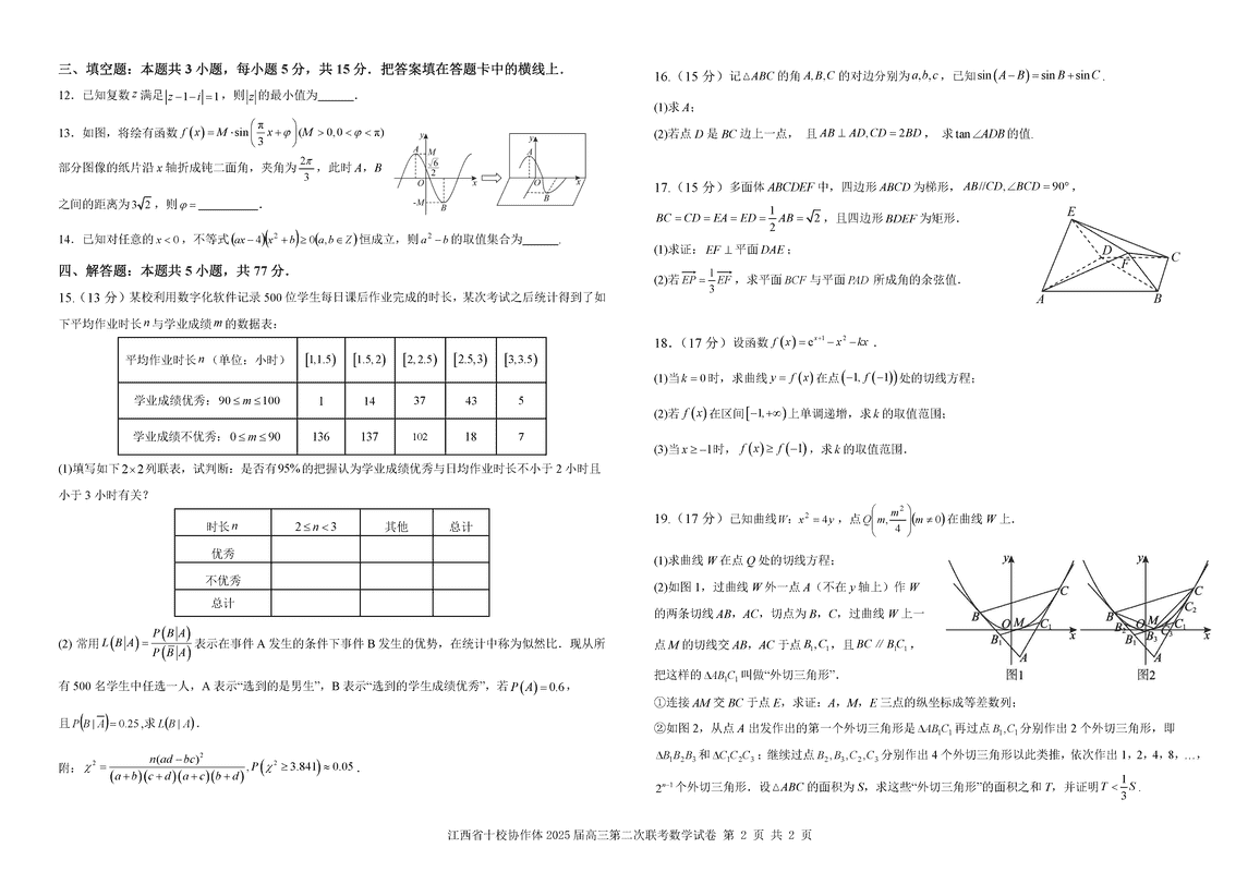 江西省十校协作体2025届高三第二次联考数学试题及答案