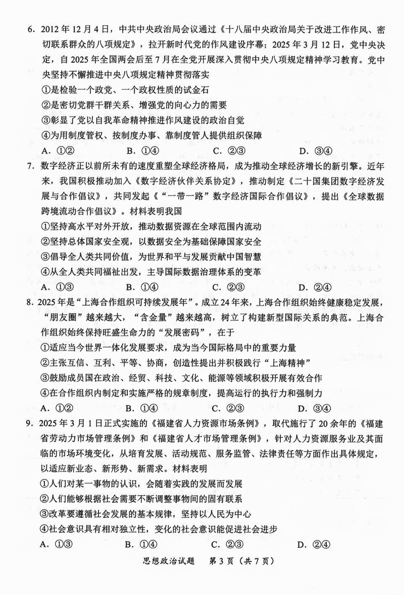 福建2025年4月高三九市联考政治试题及答案 时间:2025-04-12 福建 文综试题 福建2025年4月高三九市联考政治考试已于近日开考,为方便考生考后及时查看考试情况,查漏补缺、弥补不足,本文整理了试题答案解析相关信息! 汇总:福建2025年4月高三九市联考试题及答案汇总 政治试题及答案解析