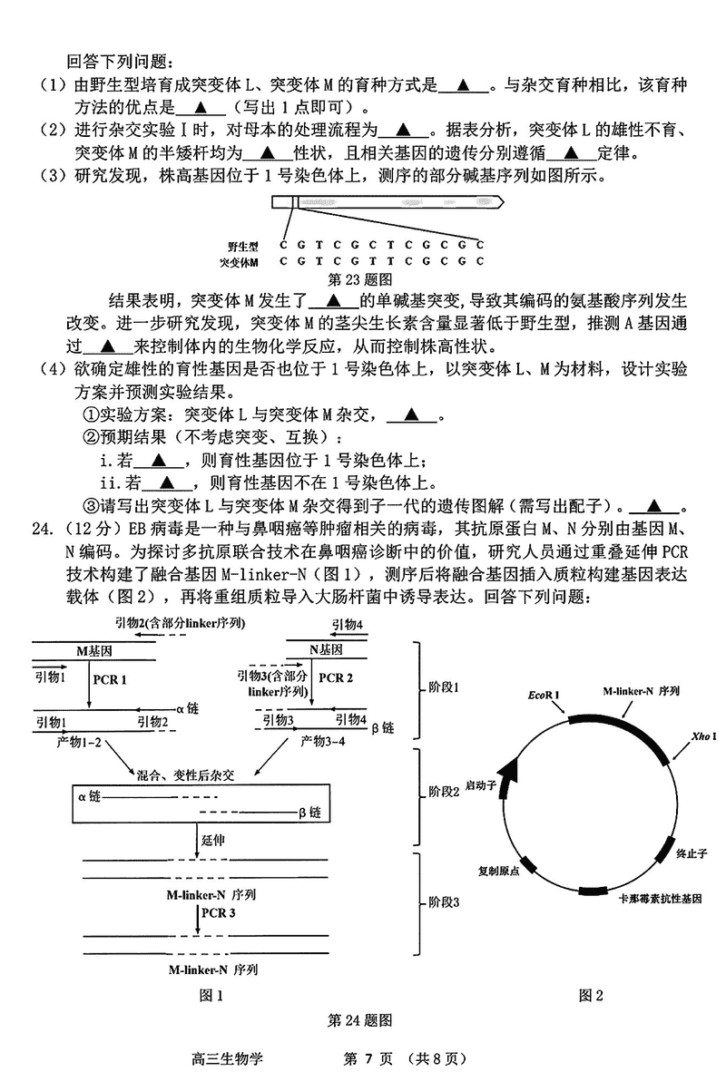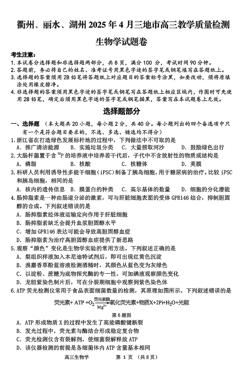 衢州、丽水、湖州三地市二模2025年4月高三教学质检生物考试已于近日开考,为方便考生考后及时查看考试情况,查漏补缺、弥补不足,本文整理了试题答案解析相关信息!