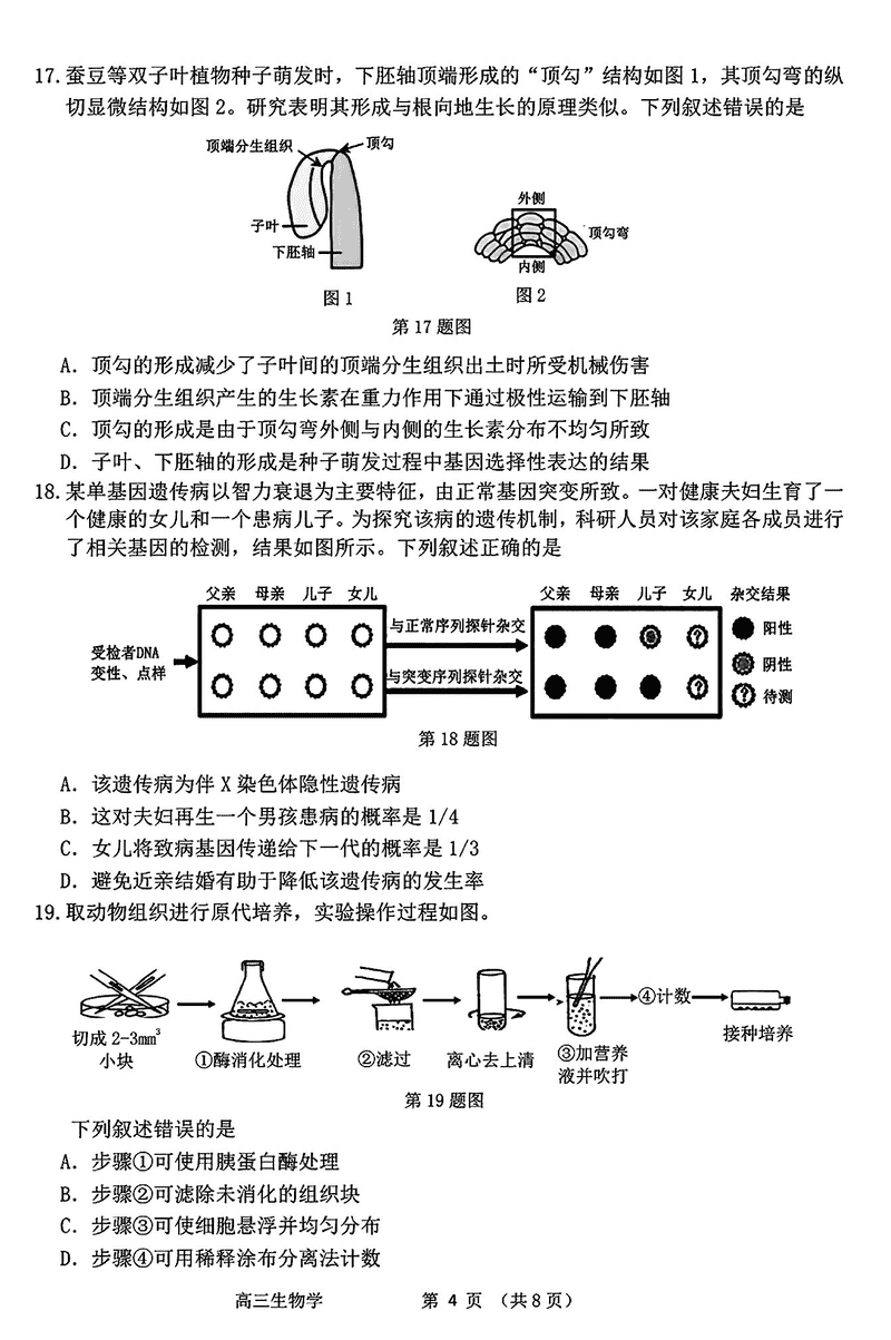 衢州、丽水、湖州三地市二模2025年4月高三教学质检生物试题及答案
