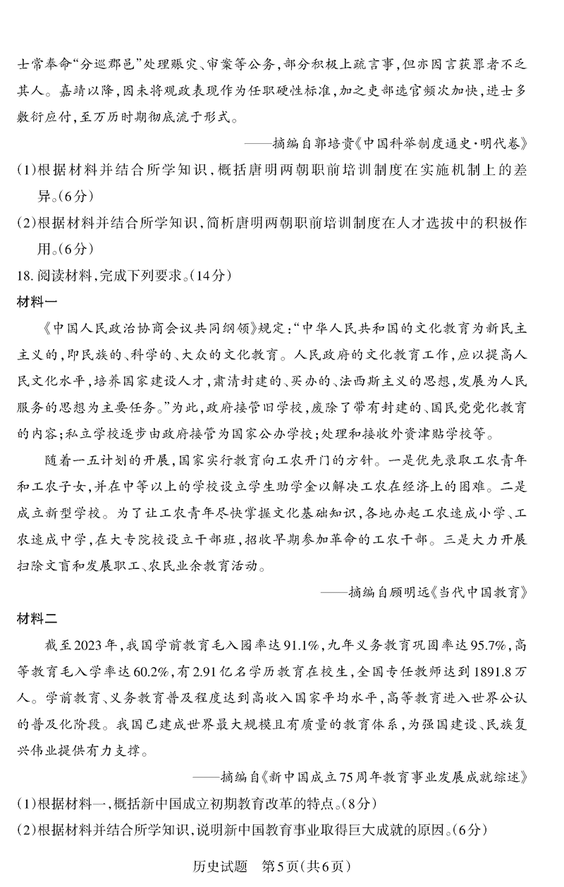 山西二模2025年高三适应性测试冲刺卷历史试题及答案