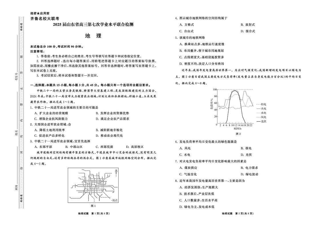 山东省齐鲁名校大联考2025届高三第七次学业水平联合检测地理试题及答案